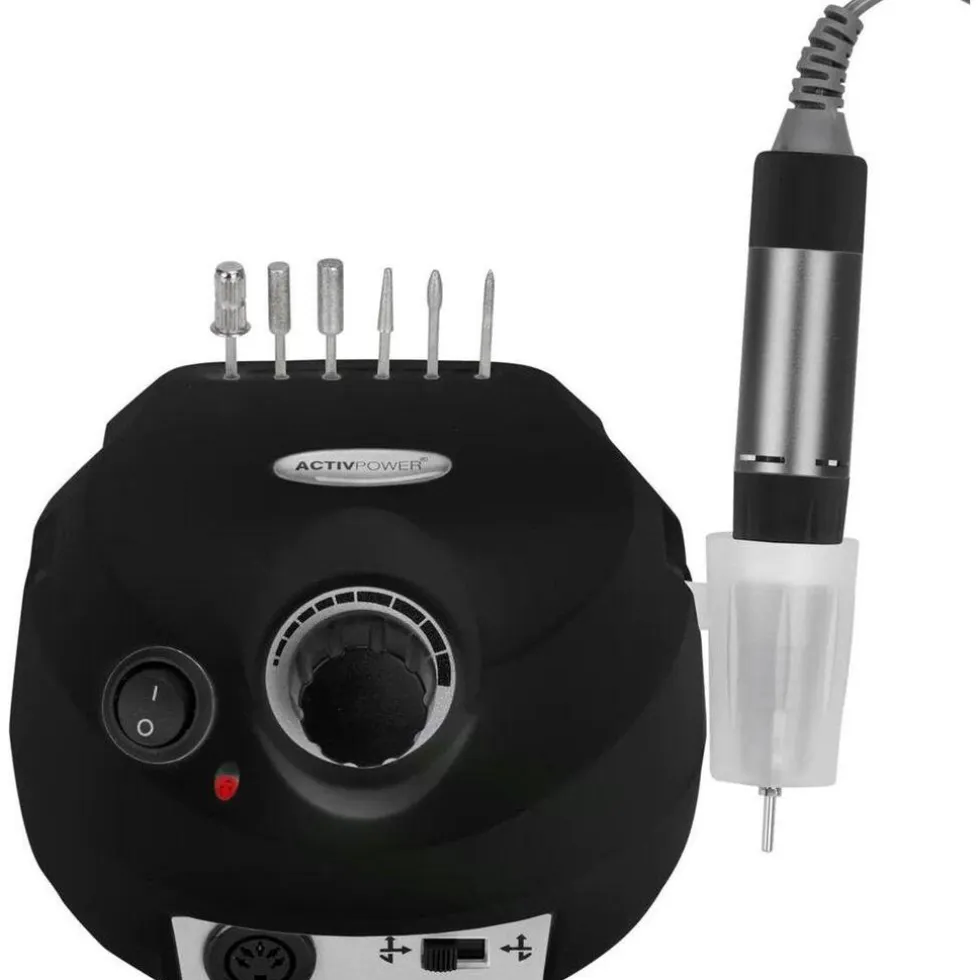 De behuizing van de ActivPower nagelfrees is in trendy zwart gekleurd, wat een moderne en stijlvolle uitstraling geeft aan het apparaat.
