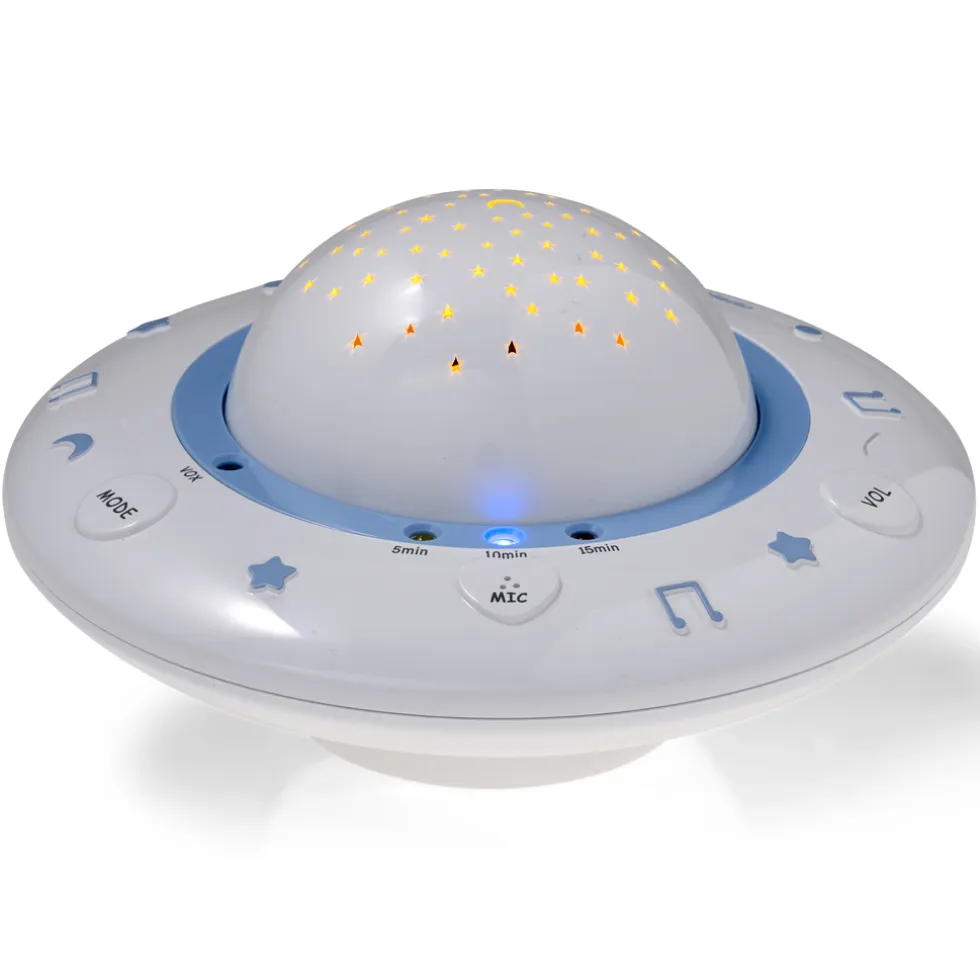 De BC-125 is een baby projector waarmee je mooie en kleurrijke beelden op het plafond van je babykamer projecteert, terwijl er rustige slaapliedjes door het kamertje klinken. Zo wordt heerlijk in slaap vallen een vaste gewoonte. De voordelen van de BC-125 baby projector: