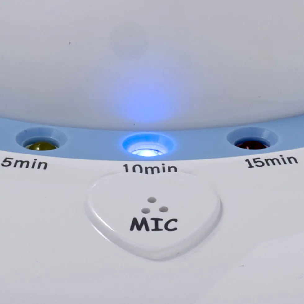 Als je de baby projector hebt aangezet zal hij beginnen met het projecteren van de beelden en het afspelen van de liedjes. Slaapt jouw kindje makkelijk en snel in? Dan kies je voor een speeltijd van vijf minuten. Maar als dat nodig is kan je ook kiezen voor tien minuten of een kwartier. Als de voorstelling is afgelopen slapen de meeste kleintjes al heerlijk. Als je baby hierna toch nog wakker is, pakt de BC-125 de geluiden op en zal opnieuw beginnen met het afspelen en je kindje in slaap sussen. Als je kindje later in diepe slaap is kun je er voor kiezen de baby projector helemaal uit te zetten.