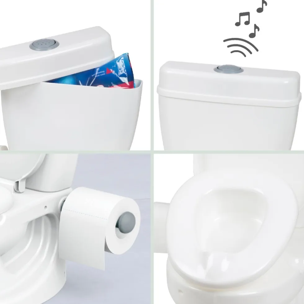 Het potje heeft een rugleuning en een antislip bodem en is dus zowel comfortabel als veilig voor je kleintje. De uitneembare binnenkant is gemakkelijk te legen en schoon te maken. Ook beschikt dit potje over een opbergvak in de stortbak van de ‘wc’.