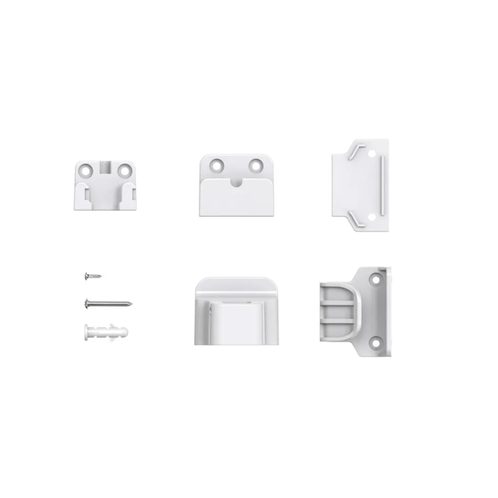 Bevestig de grijphaken aan de tegenovergestelde zijde van de cassette om het hekje te kunnen sluiten. De cassette van het traphekje en de grijphaken worden met schroeven op de muur bevestigd.