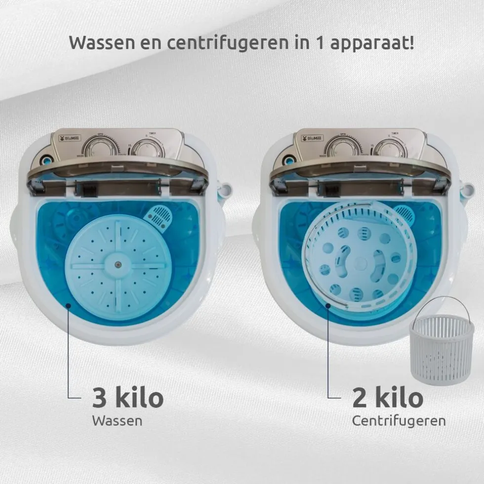 Deze BluMill mini wasmachine de oplossing voor snel tussendoor wassen, onderweg of al u thuis weinig ruimte heeft. Hij is ideaal voor studenten, voor gebruik op de camping of voor gebruik op plaatsen waar er weinig ruimte is, zoals kleine keukens, caravans of campers.
