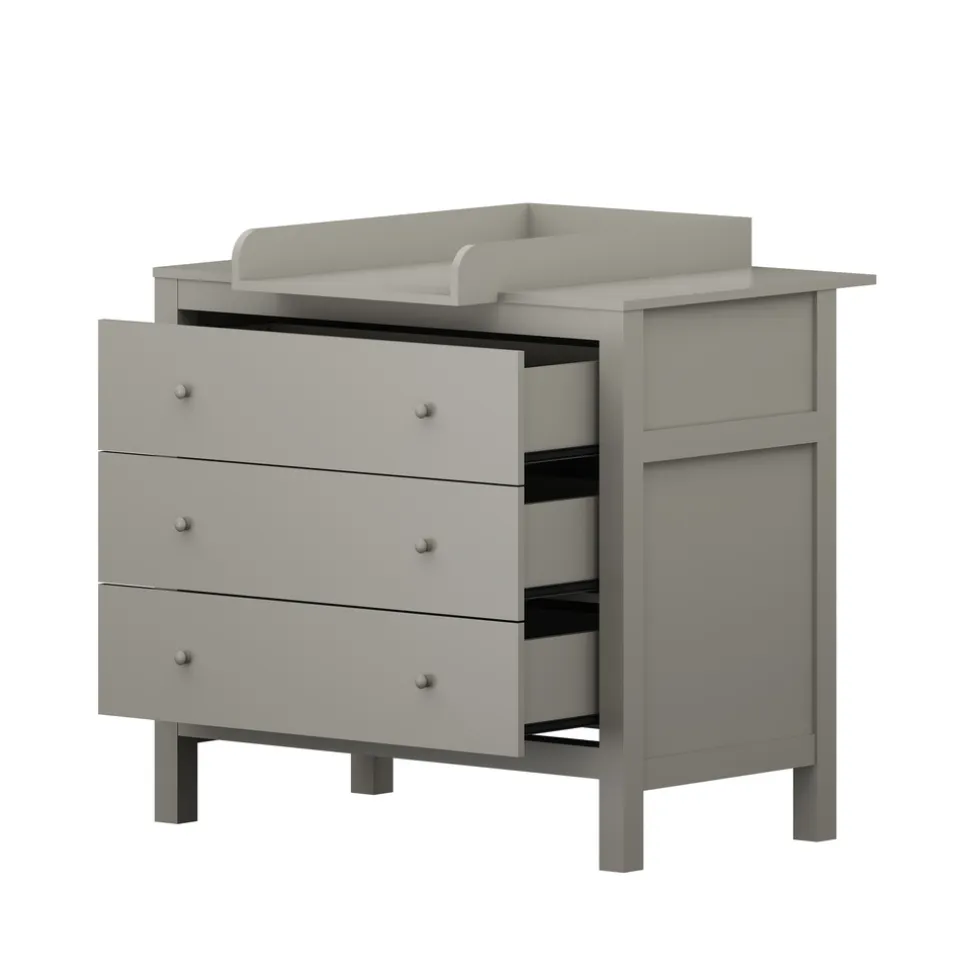 De commode is voorzien van drie ruime lades die gemakkelijk te openen en te sluiten zijn met de handige knopjes. In de lades heb je voldoende opbergruimte voor luiers, verzorgingsproducten, babykleertjes en meer. De lades zijn stevig en diep, waardoor je alles netjes en overzichtelijk kan opbergen.