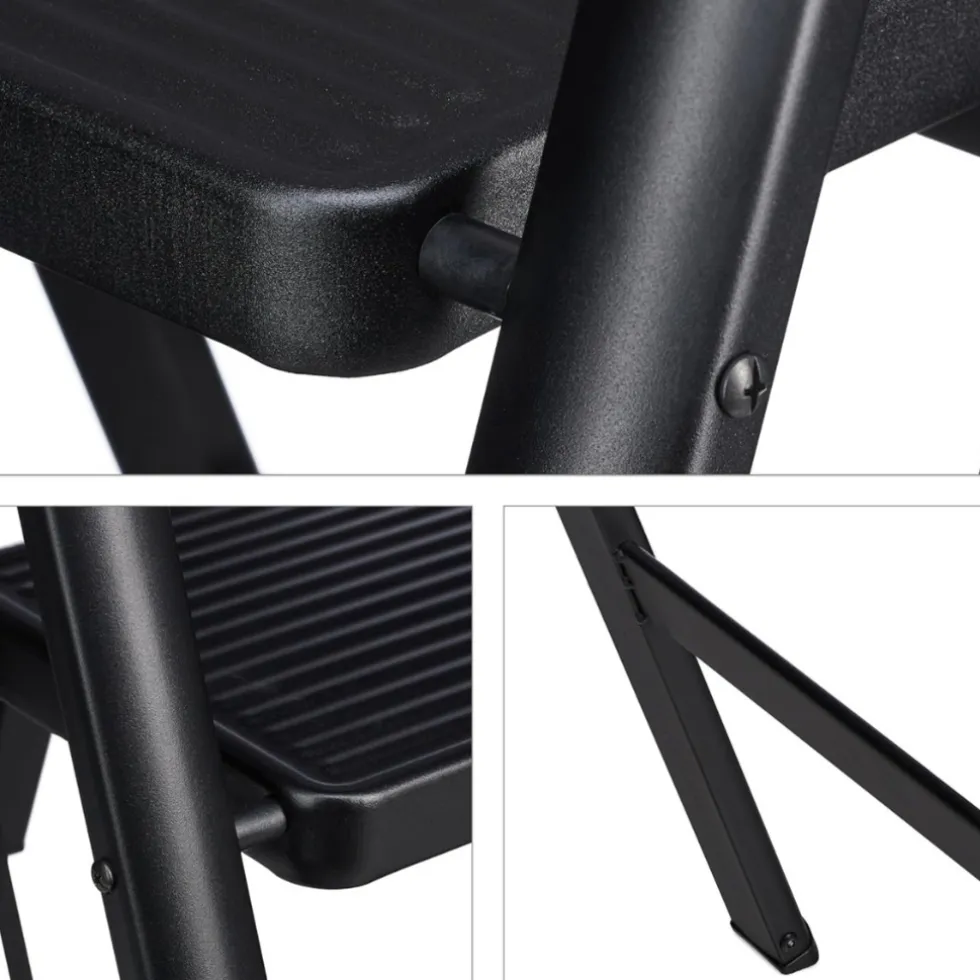 Met zijn opvouwbare ontwerp is deze ladderkruk ideaal voor dagelijks gebruik in de keuken of elders in huis. Het is een praktische aanvulling voor het bereiken van hoge kasten, het verven van muren of andere huishoudelijke taken.