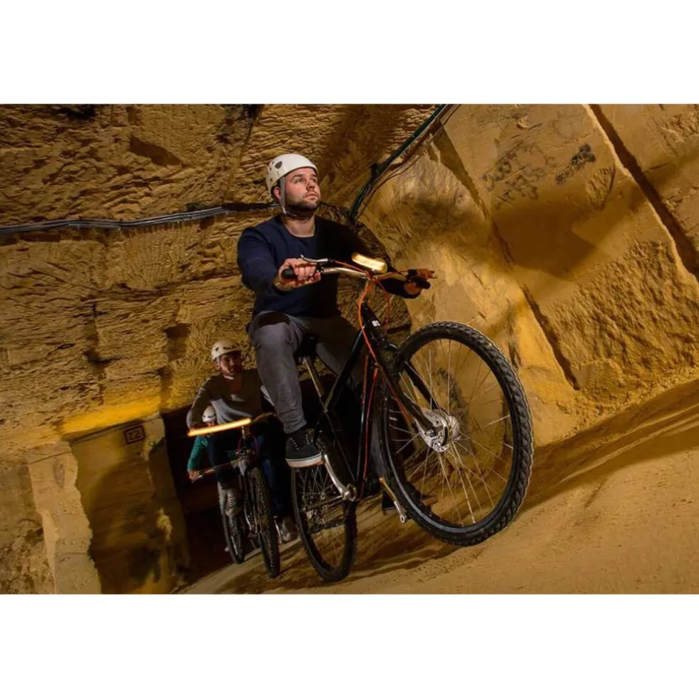 In de grotten van Valkenburg fiets je op een mountainbike door een bijzondere mergelgroeve! Onder leiding van een ervaren gids ga je op zoek naar de mooiste plekjes van de grot. Een fietstocht van 5 à 10 kilometer voert je door het immense gangenstelsel (70 kilometer lang!) van de mysterieuze Sibbergroeve, het grootste ondergrondse gangenstelsel van Europa.