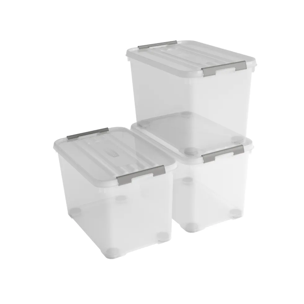 Curver Handy+ opbergbox – 20L – 3 stuks – Transparant met deksel