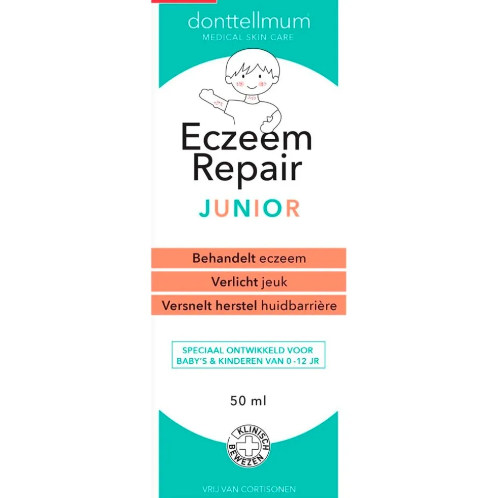 donttellmum Eczeem Repair is bedoeld voor het effectief behandelen en voorkomen van milde tot matige eczeemklachten zoals jeuk, roodheid, droge en geïrriteerde huid. Het is geschikt voor baby’s en kinderen vanaf acht weken met een minimaal gewicht van vier kilogram.