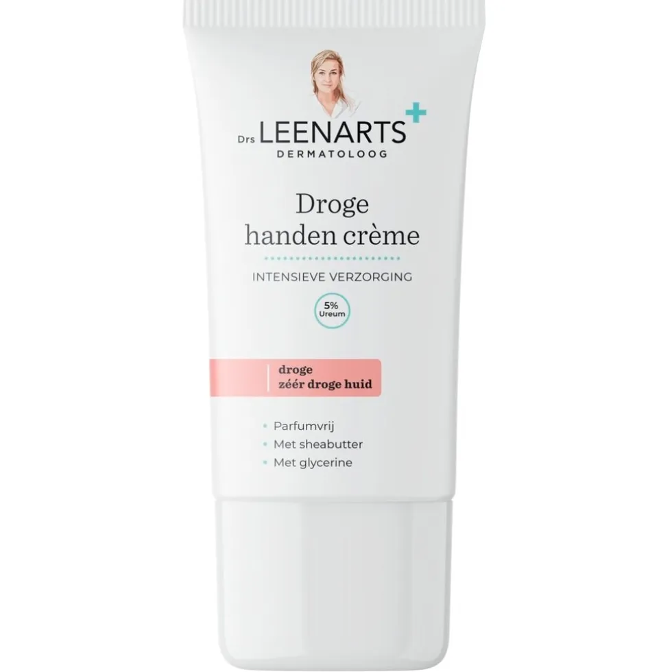 Drs Leenarts Droge Handen Crème voedt en hydrateert. De intensieve verzorging met 5% ureum en huideigen lipiden maakt je handen weer soepel en zacht.