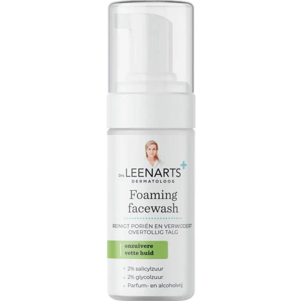 De milde Drs Leenarts Schuimende Gezichtsreiniger bevat 2% glycolzuur en 2% salicylzuur. Deze ingrediënten helpen bij verstopte poriën en onzuiverheden.