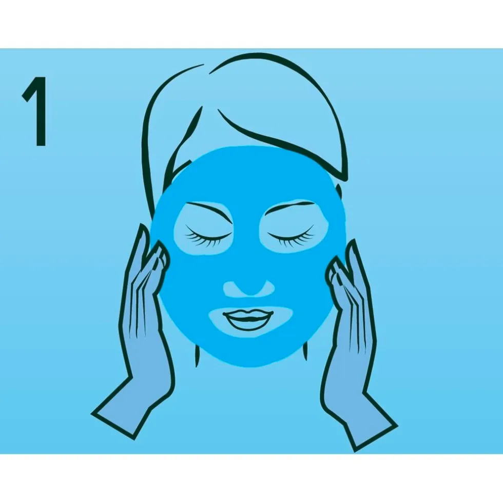 Stap 3: Inwerken Laat het masker aansluiten met de gezichtsomtrek. Laat 15 minuten inwerken.