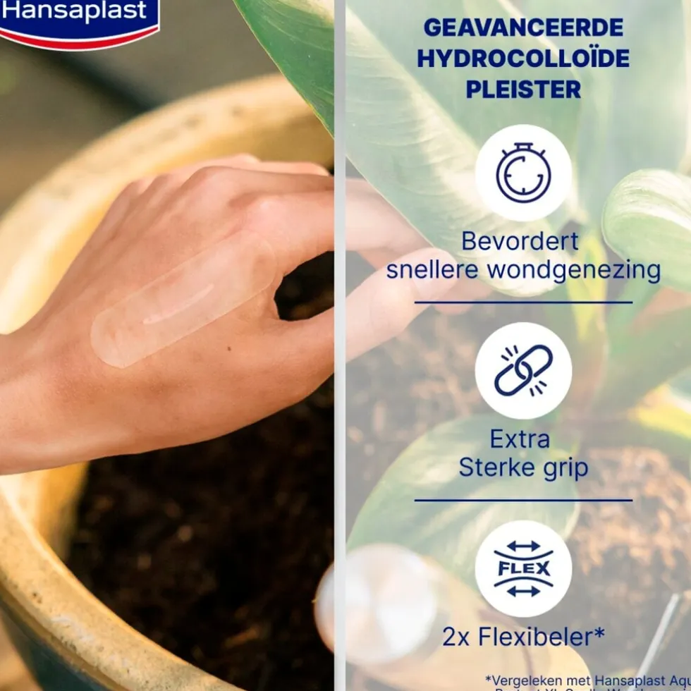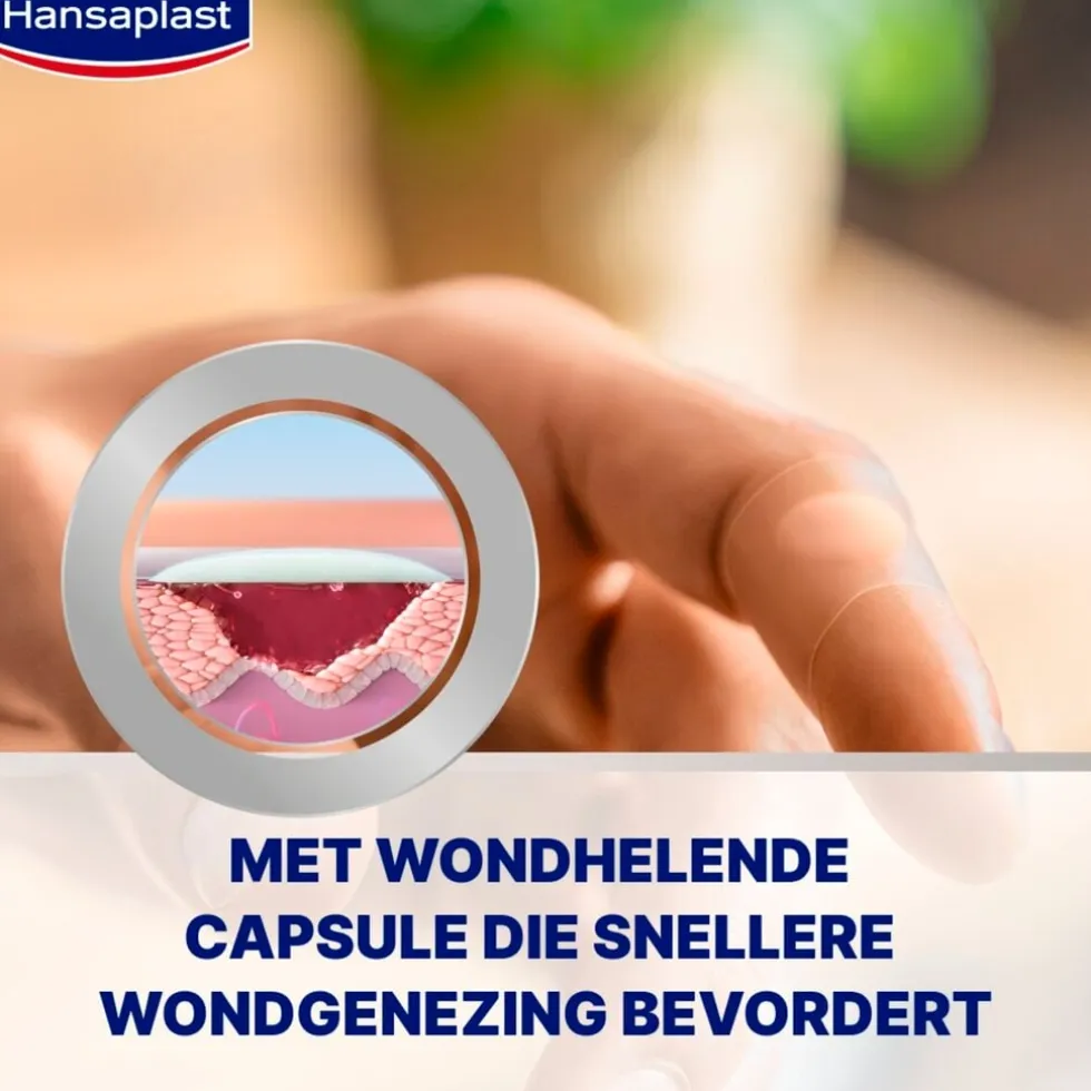 Hansaplast Second Skin Protection Hydrocolloid Pleisters bevorderen een snellere genezing door de helende capsuletechnologie, waarbij de wondverzorging een vochtige omgeving creëert voor een optimale genezing.
