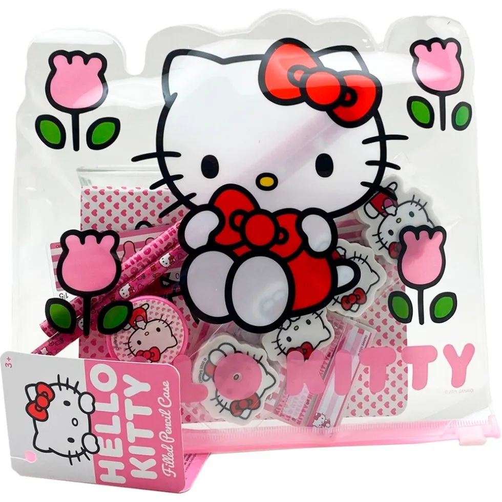 Deze schattige Hello Kitty Gevulde Etui in de vorm van Hello Kitty wil je hebben! De etui bevat twee potloden, een liniaal, een notitieboekje, een puntenslijper, gummen en sticky notes. De etui is geschikt voor kinderen vanaf 3 jaar.
