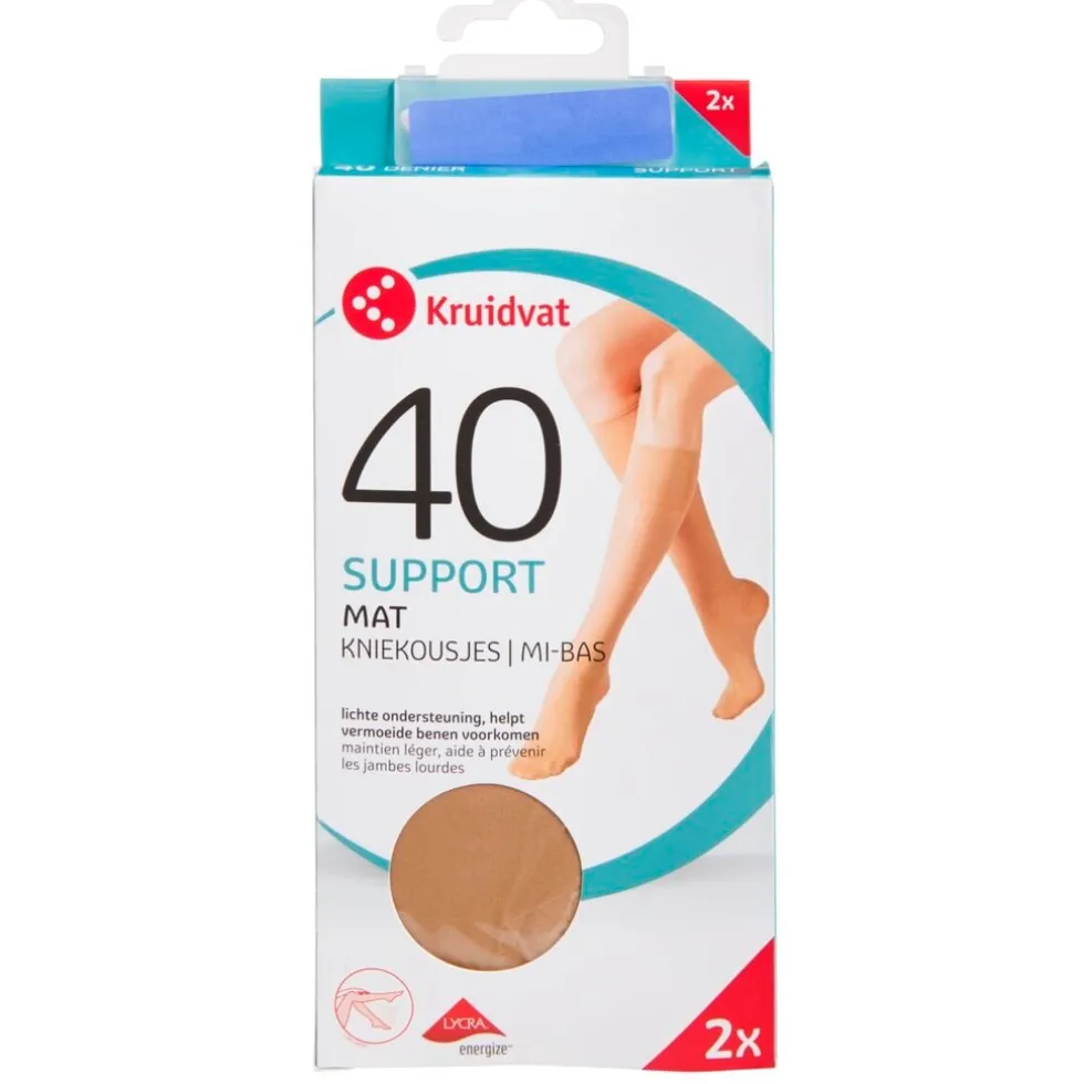 De Kruidvat 40 Den Ondersteunende Kniekous biedt ondersteuning en heeft een ingebreide hiel. De kniekous stimuleert de bloedsomloop, voorkomt vermoeide benen en geeft extra ondersteuning.