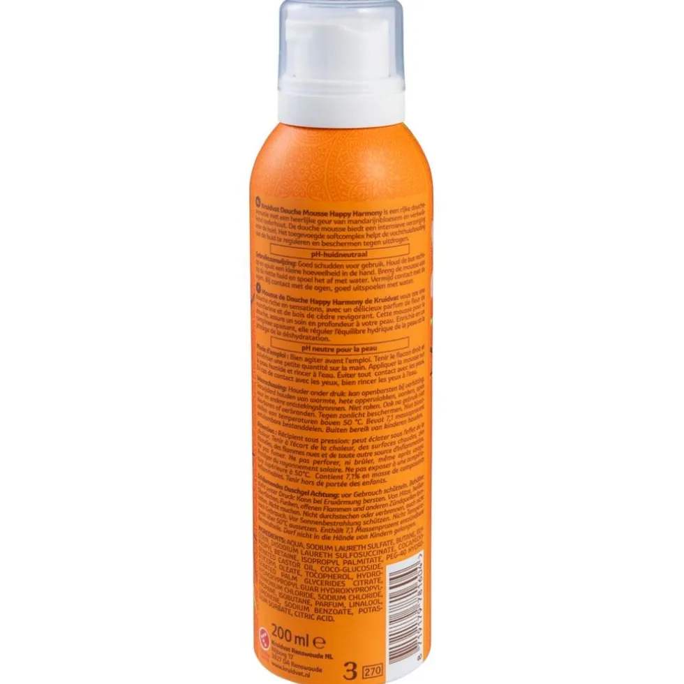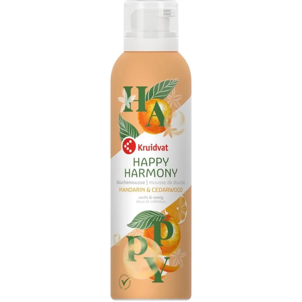 Kruidvat Happy Harmony Douchemousse is een rijke douchesensatie met de heerlijke geur van sinaasappelbloesem en verkwikkend cederhout. De douchemousse biedt een intensieve verzorging voor je huid.