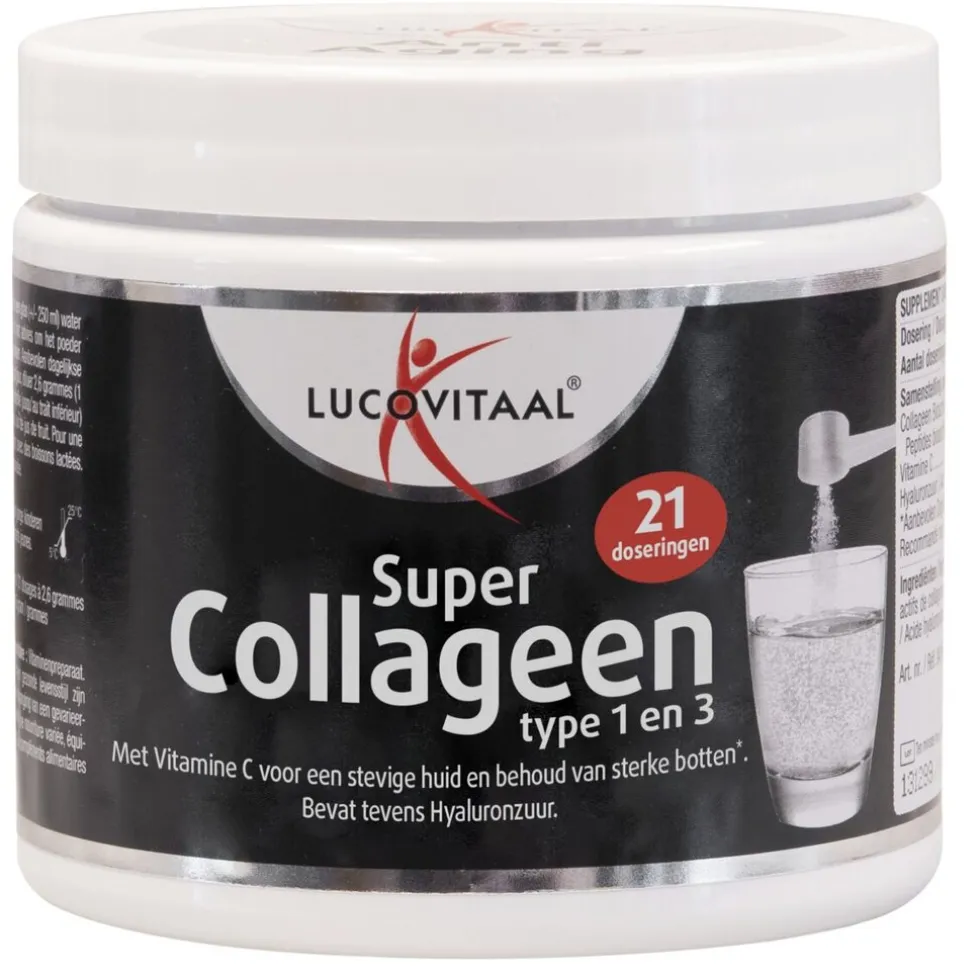 Lucovitaal Super Collageen Poeder voor volwassenen bevat vitamine C wat bijdraagt aan de vorming van collageen en helpt om je huid (van binnenuit) te verstevigen. Voor het behoud van sterke tanden en botten.
