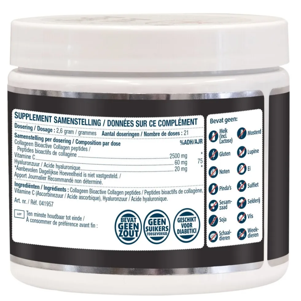 Ingrediënten: Collageen Bioactive Collagen peptides, Vitamine C, Natriumhyaluronaat.