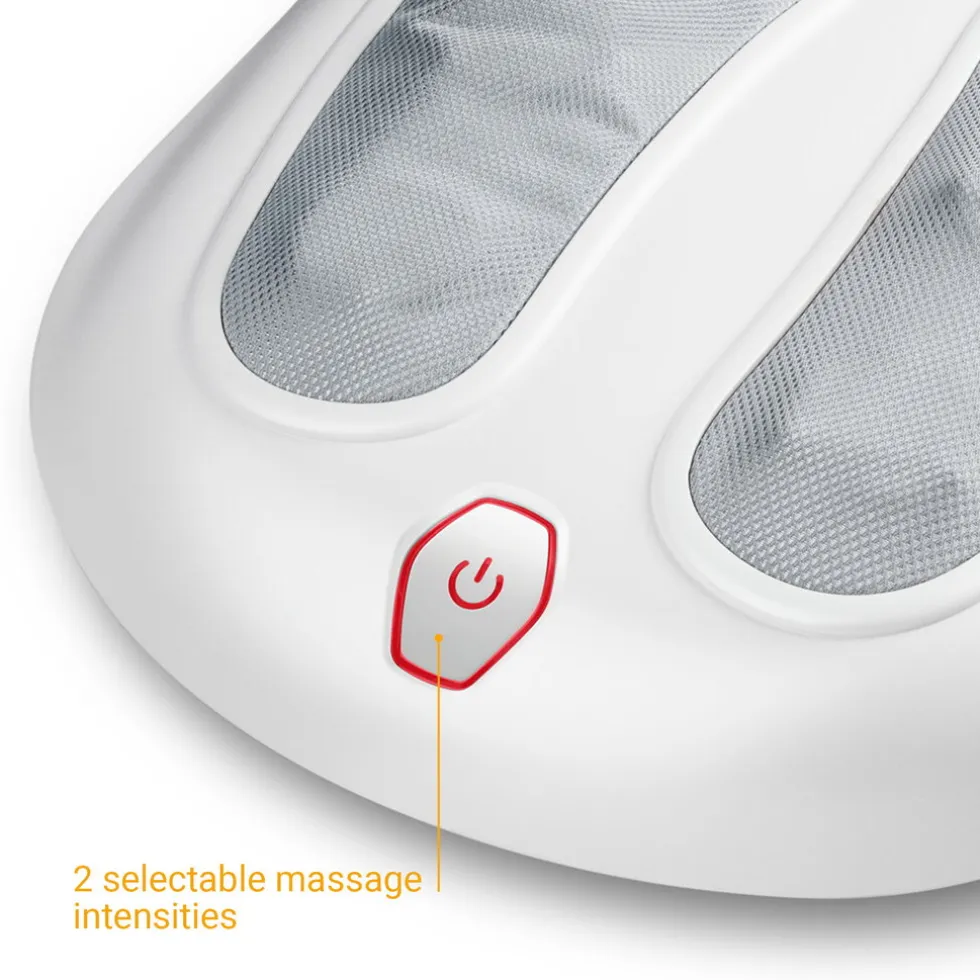 Het Medisana FM 883 Shiatsu voetmassageapparaat laat je gestreste voeten weer ademen. Dankzij de rustgevende Shiatsu-massage kunnen je voetzolen en hielen ontspannen en nieuwe energie opdoen. De massages kunnen worden genoten in twee verschillende massage-intensiteiten – afhankelijk van hoe je je voelt gedurende de dag.