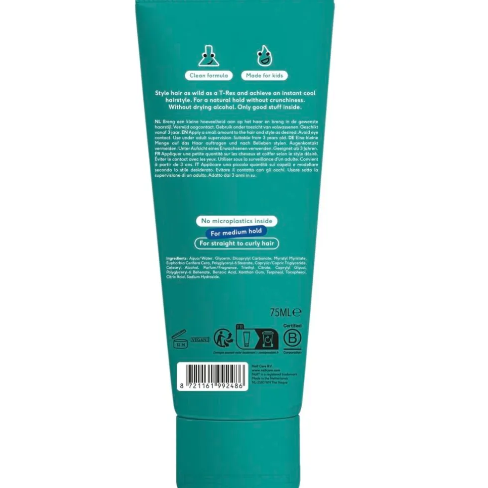 Dit product is speciaal ontwikkeld voor kids en heeft een natuurlijke hold zonder plakkerigheid, zodat het haar netjes in model blijft zonder stijf te worden. Ideaal voor school, sport of speciale gelegenheden.