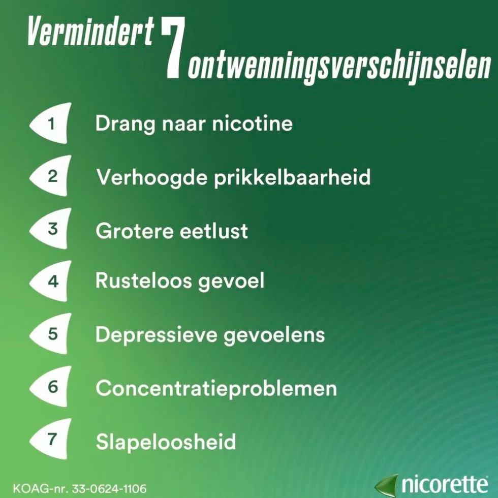 suikervrij;Bij stoppen met roken#Nicorette wordt gebruikt om de sterke behoefte aan nicotine die mensen kunnen krijgen bij het stoppen met roken, te bestrijden.
