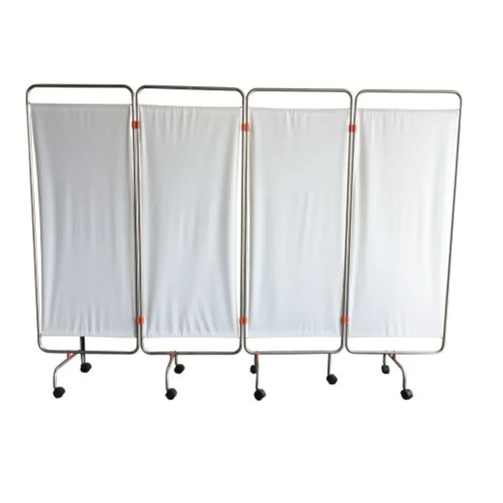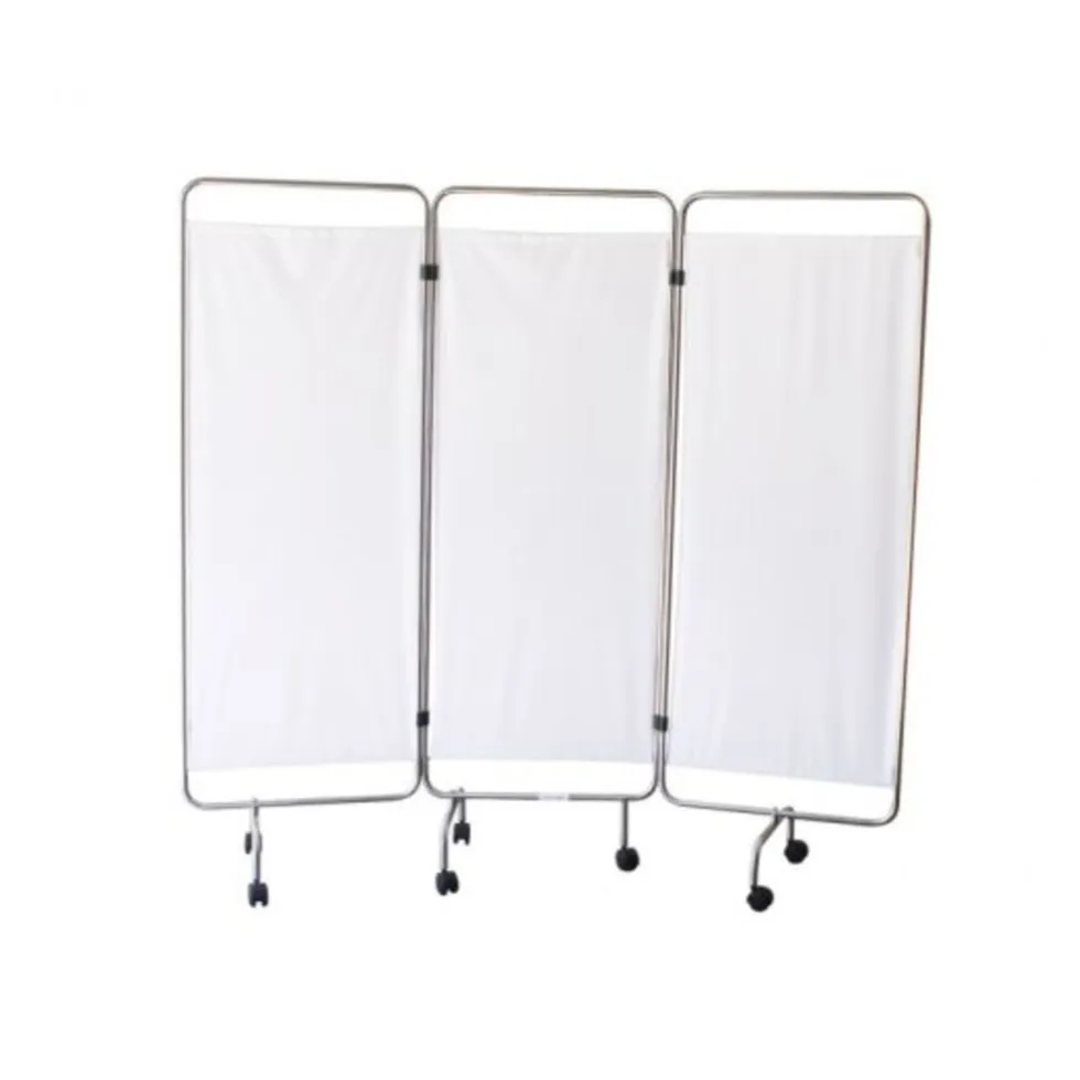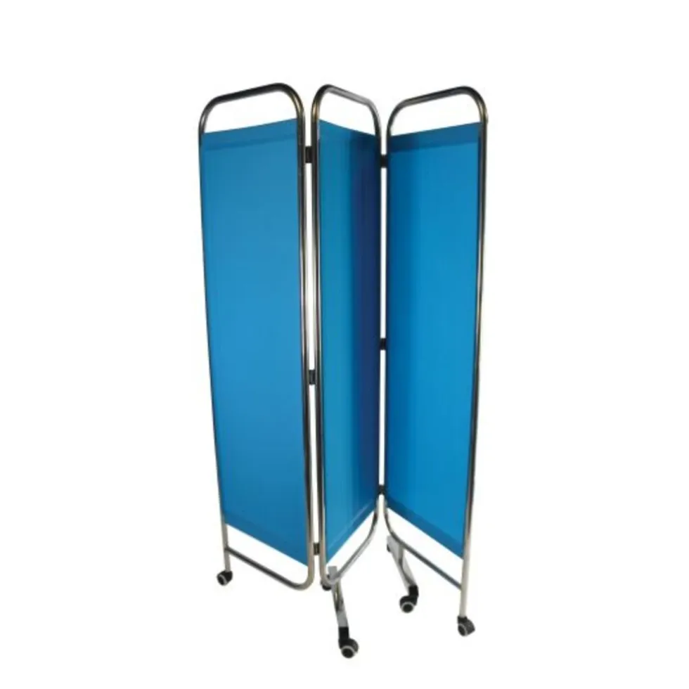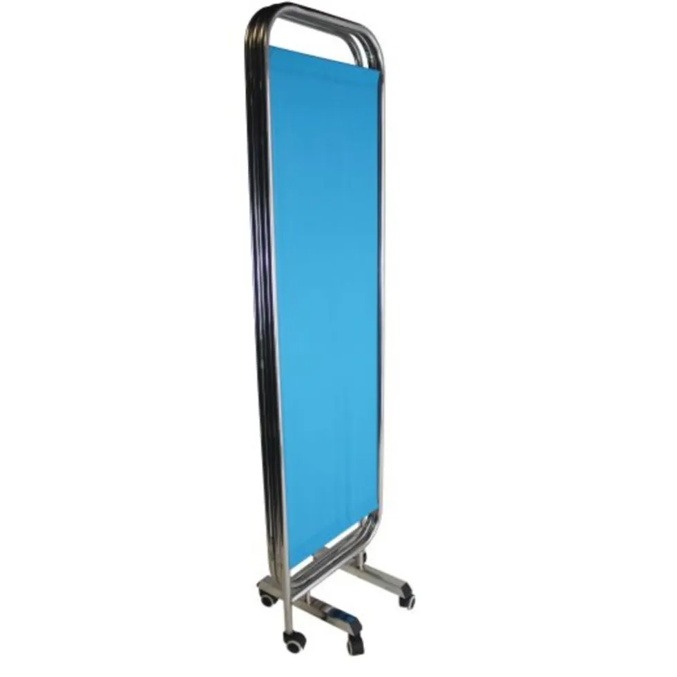Met een kamerscherm kunt u in iedere ruimte een plek van privacy creëren. Kamerschermen worden vooral gebruikt in bijvoorbeeld ziekenhuizen, verzorgingstehuizen en huisartsenpraktijken. De schermen hebben scharnieren tussen de verschillende panelen. Hierdoor kunt u het kamerscherm gemakkelijk opvouwen en aan de kant zetten, zonder dat dit veel ruimte inneemt. Ook heeft dit scherm wielen, waardoor u deze op iedere gewenste plaats neer kunt zetten. Het vervoeren en opruimen van het kamerscherm wordt hierdoor ook eenvoudiger. De stof van het scherm is blauw en kan gewassen worden. Hierdoor houdt u de schermen schoon en hygiënisch. Het frame is gemaakt van roest vrij staal.