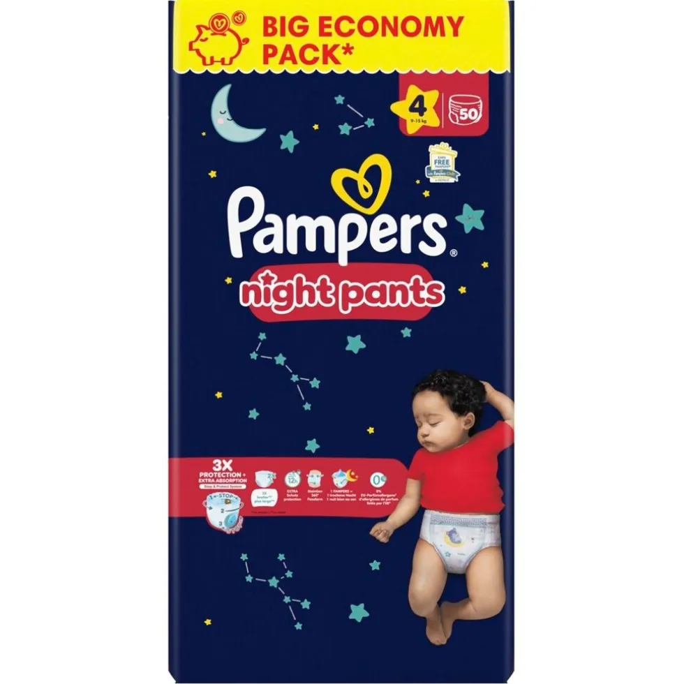 Geef je baby de beste bescherming ’s nachts met Pampers Night Pants Maat 4 Luierbroekjes. Door hun superabsorberende kern zijn ze het meest absorberend en bieden tot 100% lekvrije nachten!