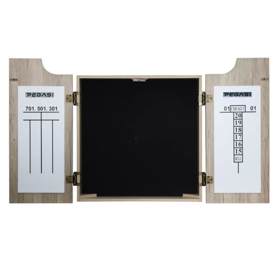 Stijlvol design met licht eiken afwerkingHet eerste dat in het oog springt bij de Pegasi dartbord cabinet set Light Oak is het stijlvolle design. Met zijn licht eiken afwerking voegt dit kabinet een vleugje elegantie toe aan elke ruimte. Of je nu een moderne spelkamer hebt of een meer klassieke inrichting, deze set past perfect bij elke interieurstijl. Het hout is van hoge kwaliteit en zorgt voor duurzaamheid, zodat je jarenlang plezier kunt beleven aan deze set.