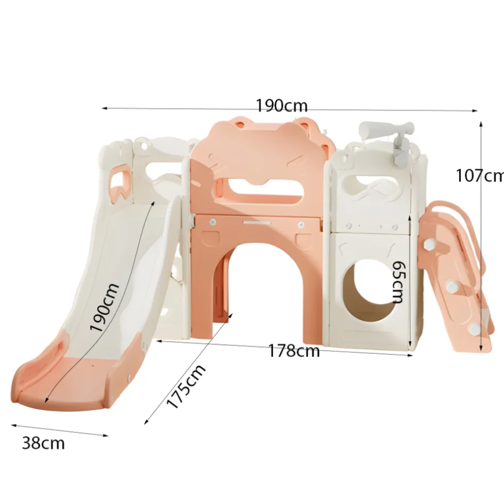 • Bevat een loopbrug, een verrekijker, een glijbaan en een basketbalring (inclusief bal)