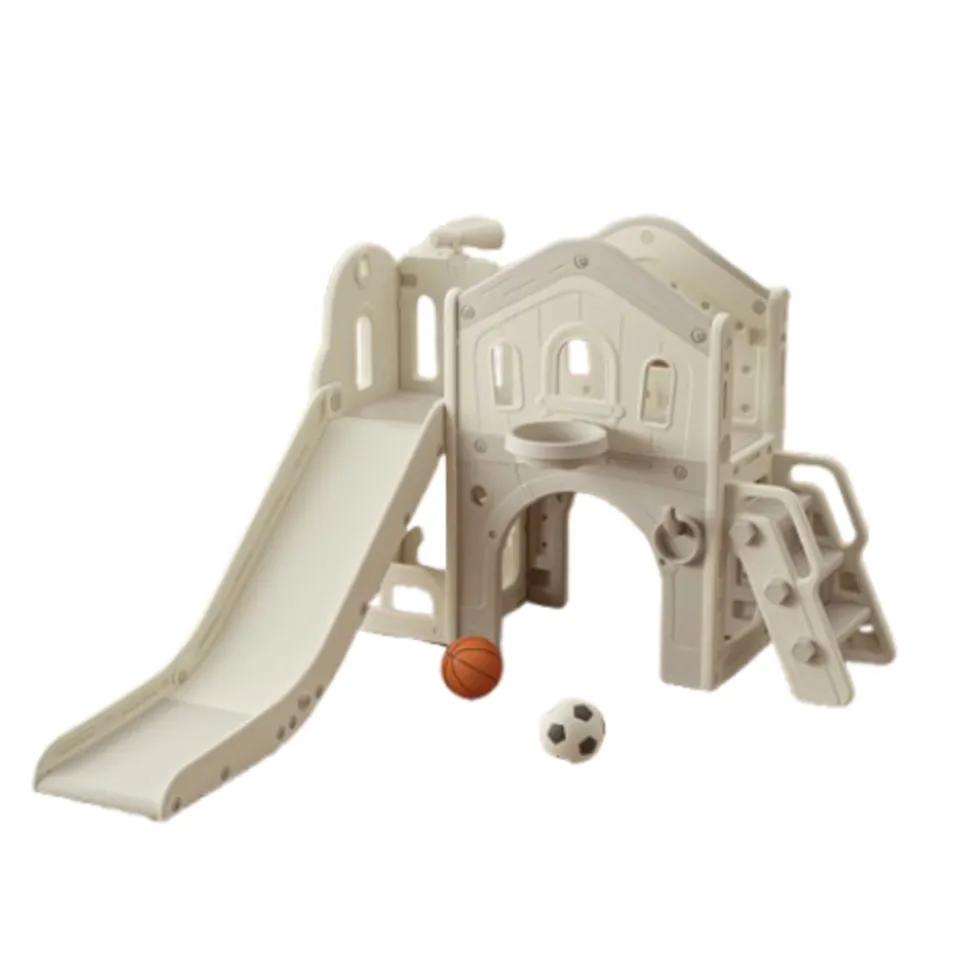 Plaats het speeltoestel op een vlakke ondergrond en zorg ervoor dat er voldoende ruimte is rondom de glijbaan voor veilig gebruik.
