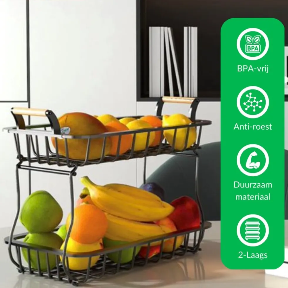 Ben je op zoek naar een mooie fruitmand? Deze fruitmand van SensaHome is hetgeen wat u zoekt. De fruitmand heeft een robuuste uitstraling en is daardoor een perfecte aanvulling voor je interieur. Een simpel, maar prachtig modern ontwerp met een functioneel design zorgt voor een stijvolle en efficiënte bewaarplaats voor je groente en fruit. Wat deze fruitmand uniek maakt is de veelzijdigheid, robuust design en de 2 lagen die je hebt om groente en fruit te bewaren. De fruitmand van SensaHome is eenvoudig te plaatsen en je hoeft geen rekening te houden dat je niet genoeg fruit meer eet.