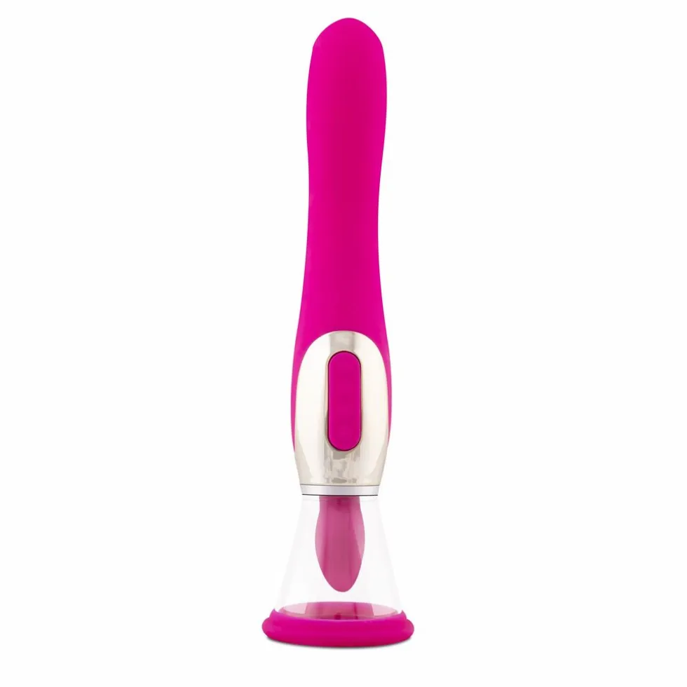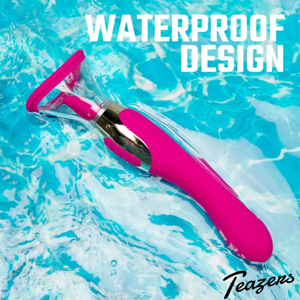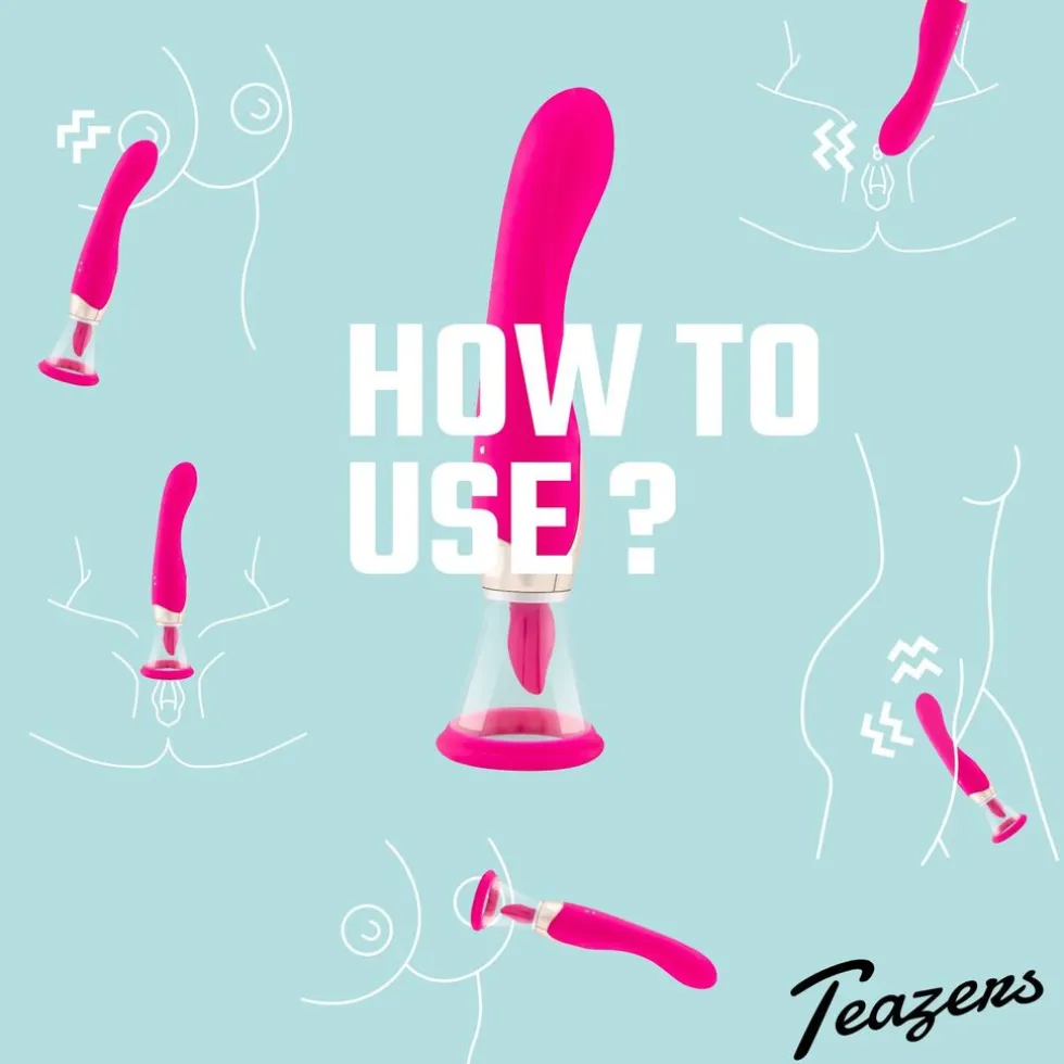 Na het gebruik van deze Teazers Pleasure Pump wil je nooit meer iets anders! Terwijl de pomp de bloedtoevoer naar jouw erogene zones aanwakkert, ben je niet alleen verzekerd van een heerlijke zuigende stimulatie, jouw opgezwollen en glanzende vulva is een opwindend gezicht voor jou in de spiegel of voor jouw partner. De tong verwent jouw clitoris op precies de perfecte manier door de 7 stimulatie standen. De G-spot vibrator aan het andere uiteinde heeft 10 vibratie standen en is geribbeld voor extra genot. Je kunt alle functies apart van elkaar bedienen. De Pleasure Pump heeft 2 opzetstukken met een diameter van 6 en 8 cm. Deze zijn makkelijk om te wisselen. Gebruik een beetje glijmiddel op de huid voor een extra sterk vacuüm effect.
