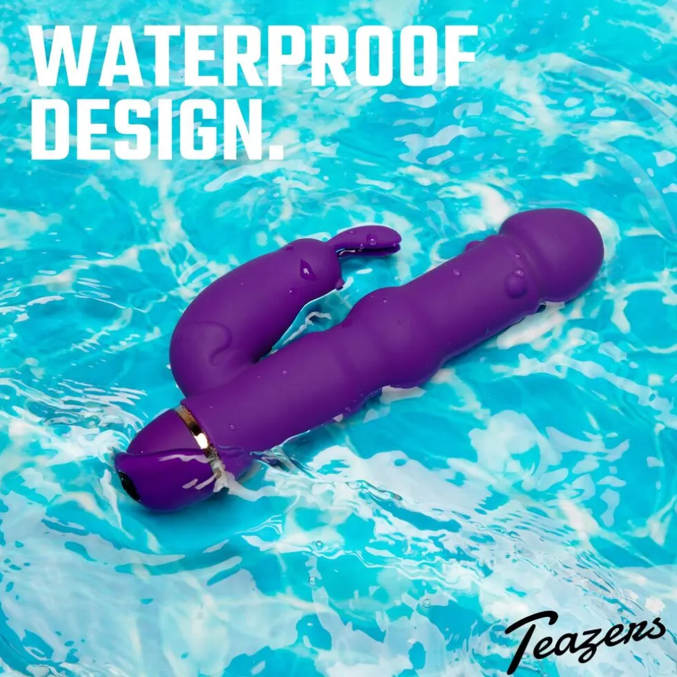 Deze siliconen rabbit vibrator van Teazers heeft een traditioneel design. De schacht is flexibel en voorzien van een ronde eikel op de top. Hieronder zitten stimulerende nopjes. Ook is de vibrator voorzien van een flexibele clitorisstimulator die met zijn kietelende oortjes de meest gevoelige plekjes raakt. De vibrator heeft maar liefst 20 standen die je eenvoudig bedient met de drukknop aan de onderkant. De sextoy wordt geleverd in een luxe verpakking waardoor het ook het perfecte cadeau is voor jezelf of je partner.