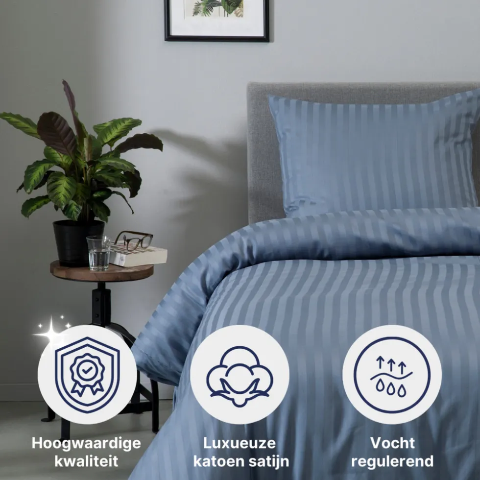 Katoen satijn is een ademende stof met een vocht absorberende eigenschap, dit zorgt voor de perfecte nachtrust.