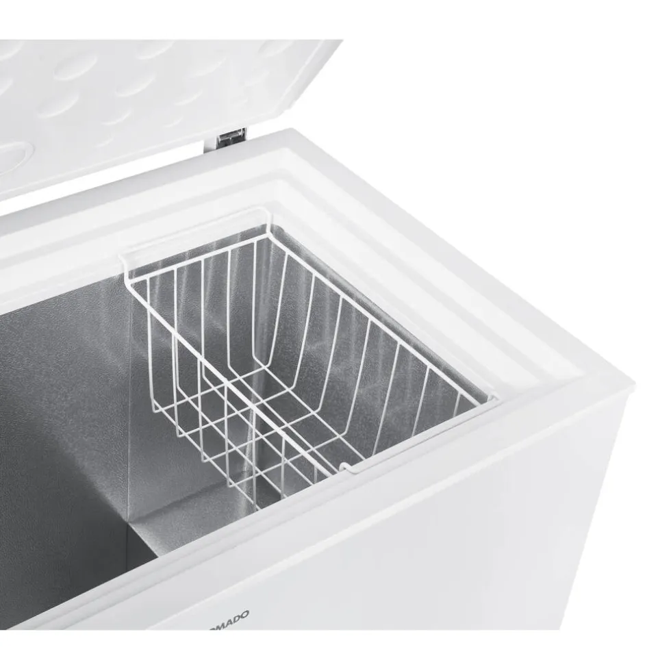 De vrieskist is voorzien van een strak en compact design. Aan de voorkant van de vriezer vind je de digitale thermostaat. Hiermee kan je de gewenste temperatuur van de vrieskist instellen. De vrieskist gaat via de deksel aan de bovenkant open. De vrieskist is voorzien van een handige uitneembare opbergkorf. De opbergkorf hang je boven in de vrieskist, waardoor je goed bij de etenswaren kunt. Dankzij de handige binnenverlichting in de klep zie je precies wat er in de vrieskist ligt
