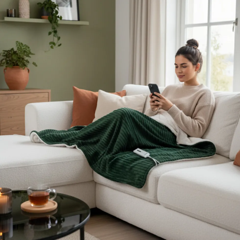 Het extra zachte, fluffy fleece materiaal voelt heerlijk aan en geeft jou precies het comfy gevoel als je eronder ligt. De Tomado elektrische deken is tweekleurig uitgevoerd met een donkergroene buitenkant en witte binnenkant. Perfect voor een hotel chique interieur!