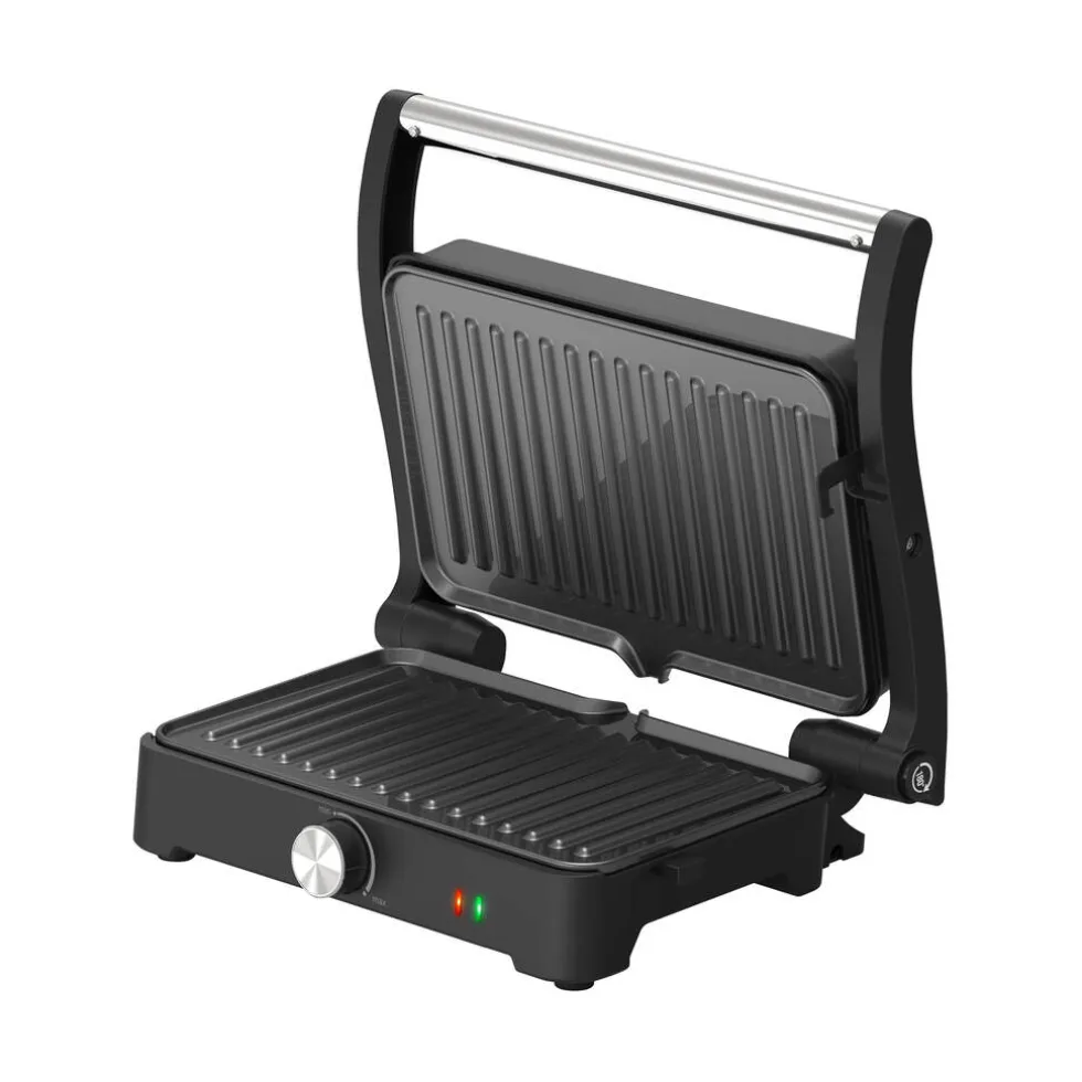 Dankzij de RVS behuizing heeft deze contactgrill een luxe uitstraling. Hij is voorzien van een strak RVS design in combinatie met zwart. Met een vermogen van 1500 watt is de contactgrill snel op de juiste temperatuur om jouw lekkerste gerechten te bereiden. De temperatuur kun je zelf regelen door eenvoudig aan de temperatuurknop te draaien.
