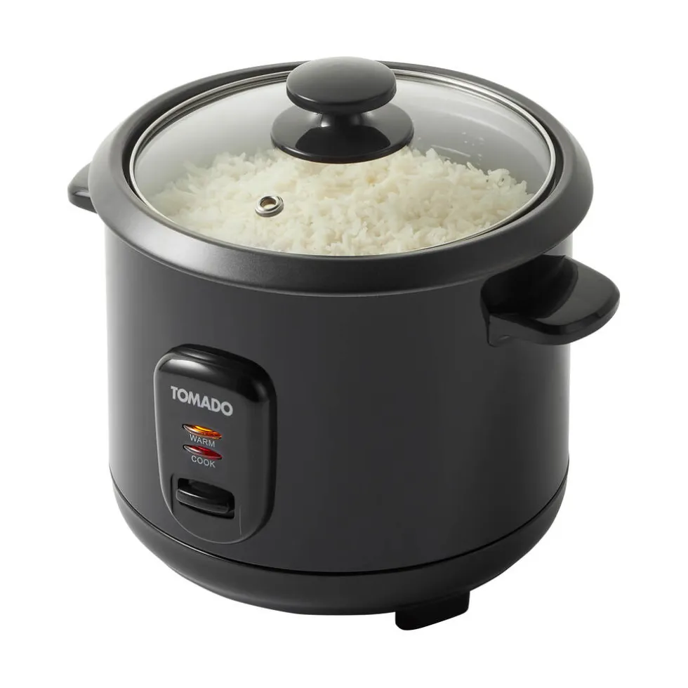 Met deze praktische rijstkoker TRC1001B van Tomado zet je ’s avonds een heerlijke pan rijst op tafel. De rijstkoker heeft een inhoud van 1 liter waarmee je tot 5 porties rijst kunt bereiden — ideaal voor een groot gezin. De uitneembare binnenpan is voorzien van een anti-aanbaklaag, waardoor de rijst niet blijft plakken en gemakkelijk op te scheppen is. De rijstkoker wordt standaard geleverd met een maatbeker en lepel. Het apparaat houdt de gekookte rijst nog even warm en wanneer je uitgegeten bent, zet je de rijstkoker eenvoudig uit.