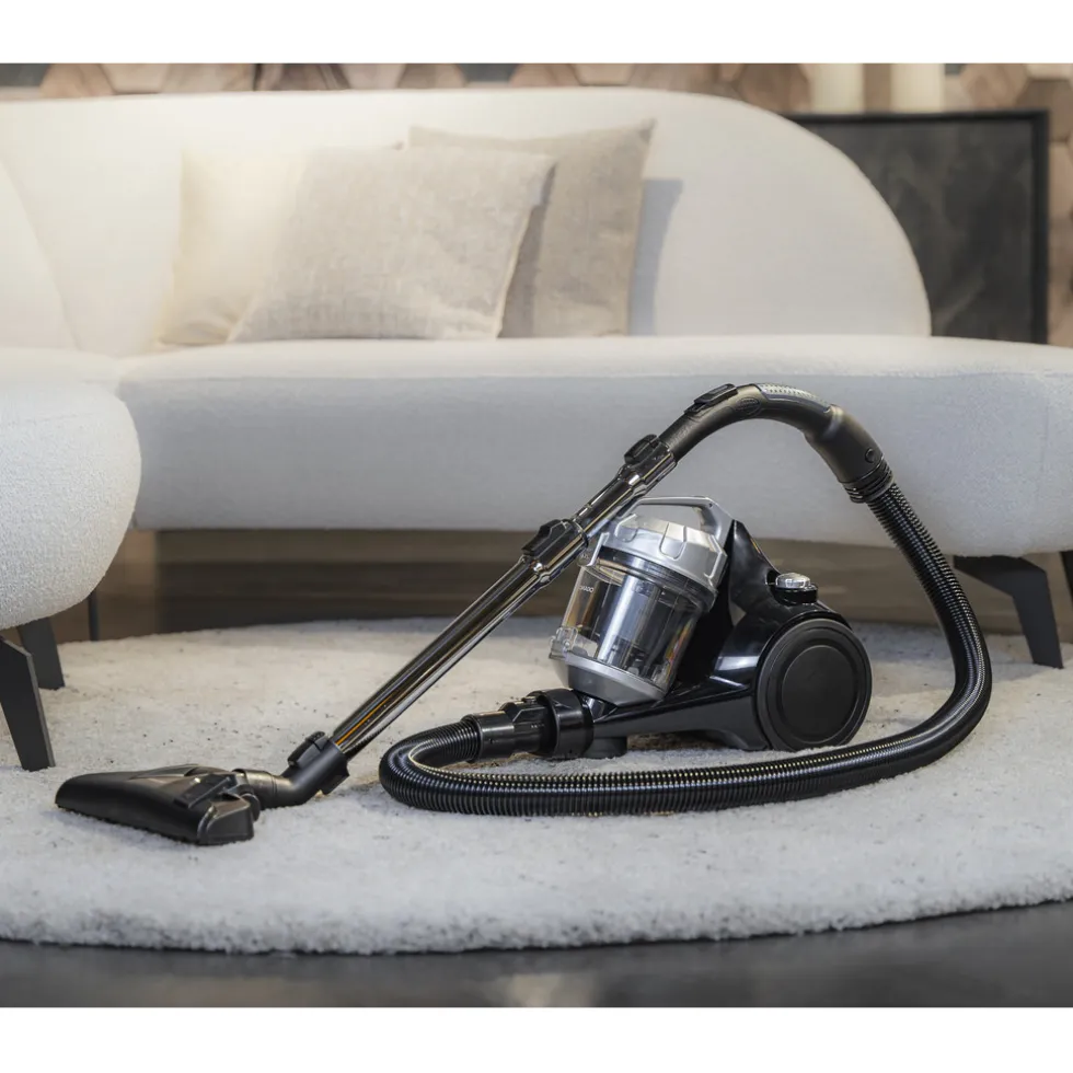 Stofzuiger zonder stofzakDeze cycloon stofzuiger is enorm wendbaar. Dankzij het zwenkwiel en de draaibare slang kan hij moeiteloos 360° draaien. Zo kun je gemakkelijk om meubels en accessoires stofzuigen. Het materiaal van deze stofzuiger is licht, waardoor je tijdens het stofzuigen geen last krijgt van je rug of armen.