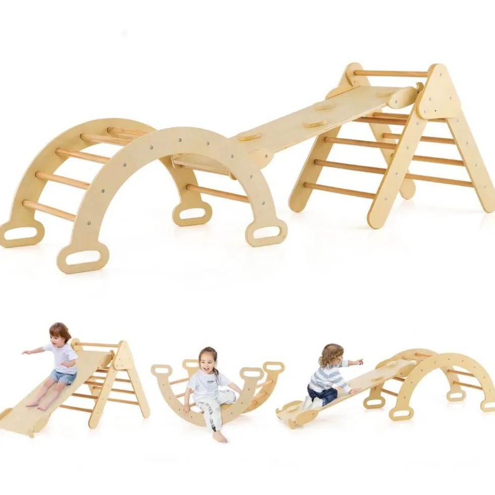 Laat kinderen genieten van verschillende speelactiviteiten met deze houten klimset – perfect voor uren speelplezier!