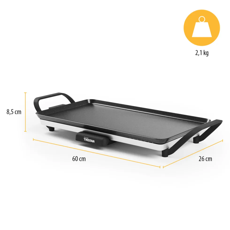 Met de Tristar bakplaat kun je de temperatuur eenvoudig aanpassen dankzij de verstelbare thermostaat. Dit betekent dat je de perfecte temperatuur kunt kiezen voor elk gerecht dat je wilt bereiden. Of je nu pannenkoeken. gegrilde groenten of gebakken eieren wilt maken. met de verstelbare thermostaat heb je de volledige controle.