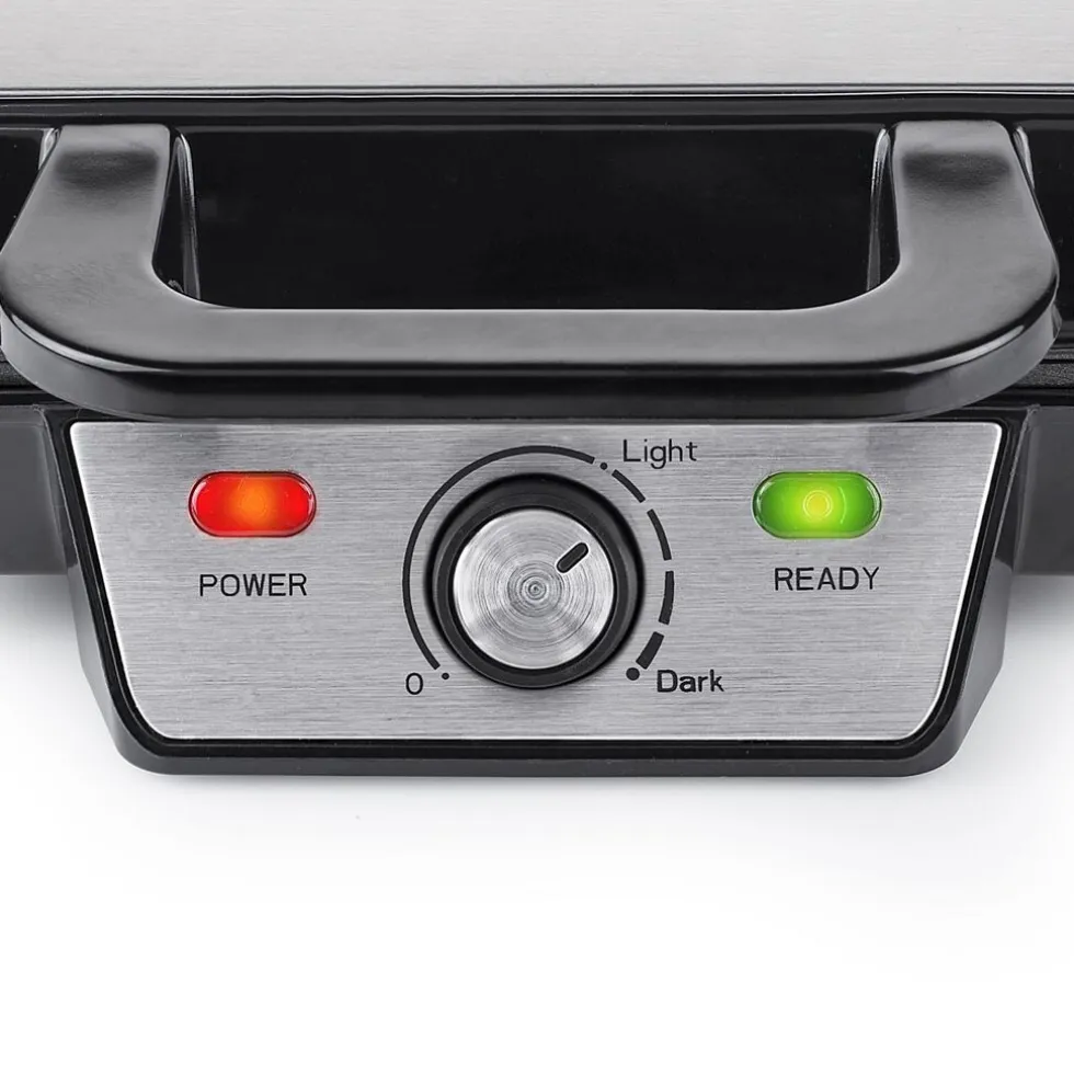 - Met een vermogen van 1000W is het wafelijzer snel op de gewenste temperatuurr
