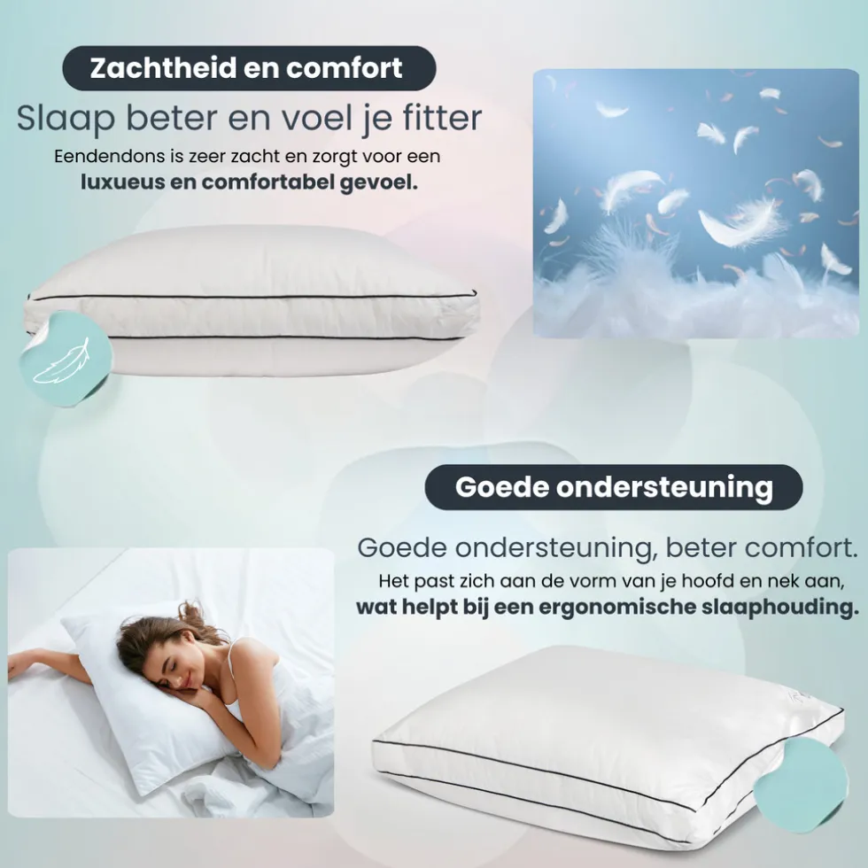 Of je nu op je rug, zij of buik slaapt, dit hoofdkussen biedt de perfecte ondersteuning voor jouw slaaphouding.