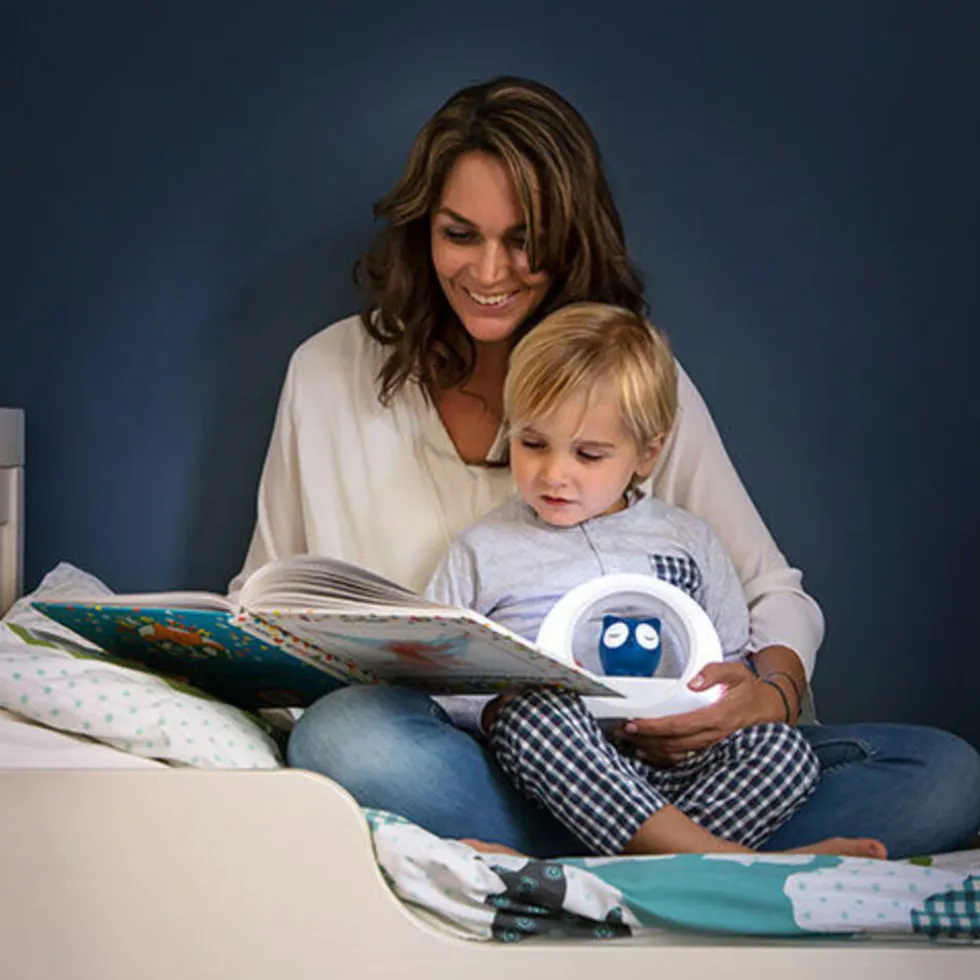Het nachtlampje gaat automatisch aan als je kindje huilt. Wanneer je kindje ‘s nachts begint te huilen, schakelt de geluidssensor het warme licht van het uiltje automatisch aan.