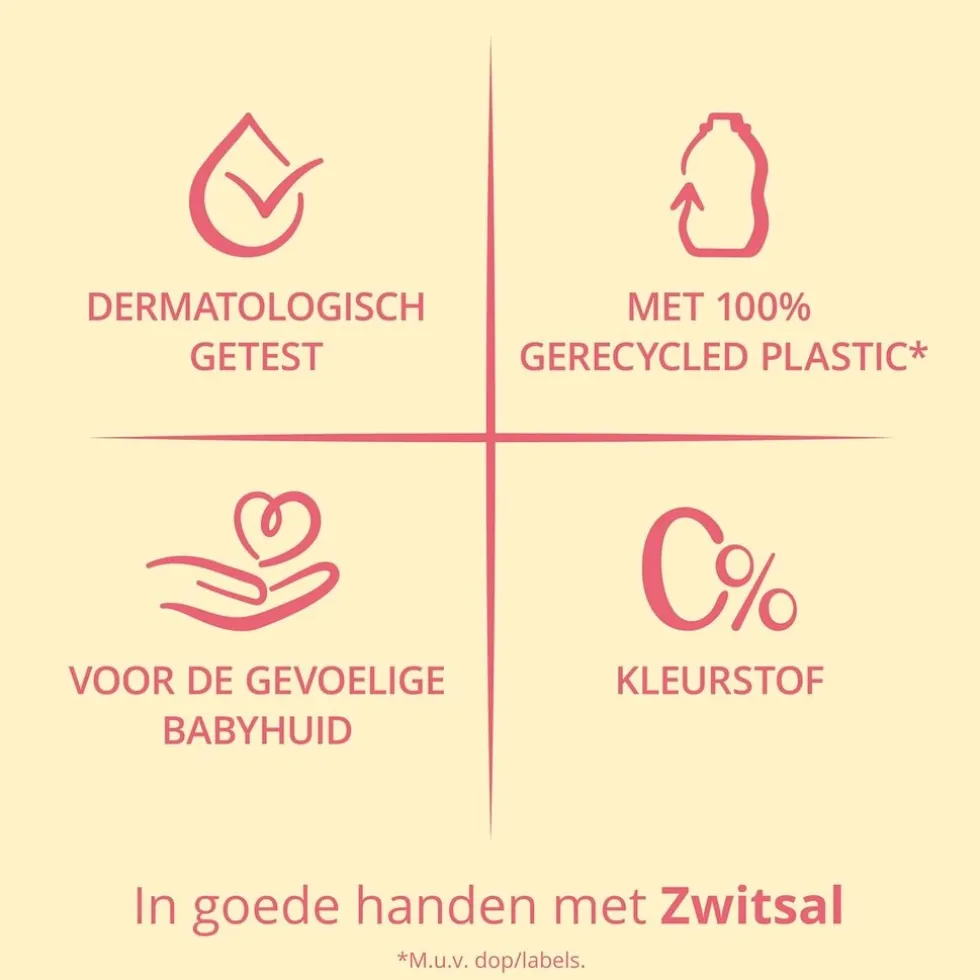Niets is zo heerlijk zacht als de huid van jouw baby en net als jij wil Zwitsal dat zo houden. Daarom zorgen ze er al bijna 100 jaar voor dat hun babyverzorgingsproducten passen bij de speciale eigenschappen van het babyhuidje. Ze vinden het belangrijk dat hun producten mild, veilig en zacht zijn voor de huid van je baby. Daarom besteed Zwitsal veel aandacht aan de kwaliteit van onze producten. Om de kwaliteit en mildheid van hun producten te garanderen, worden alle producten dermatologisch getest. Bovendien zijn de producten mild en pH-huidvriendelijk.