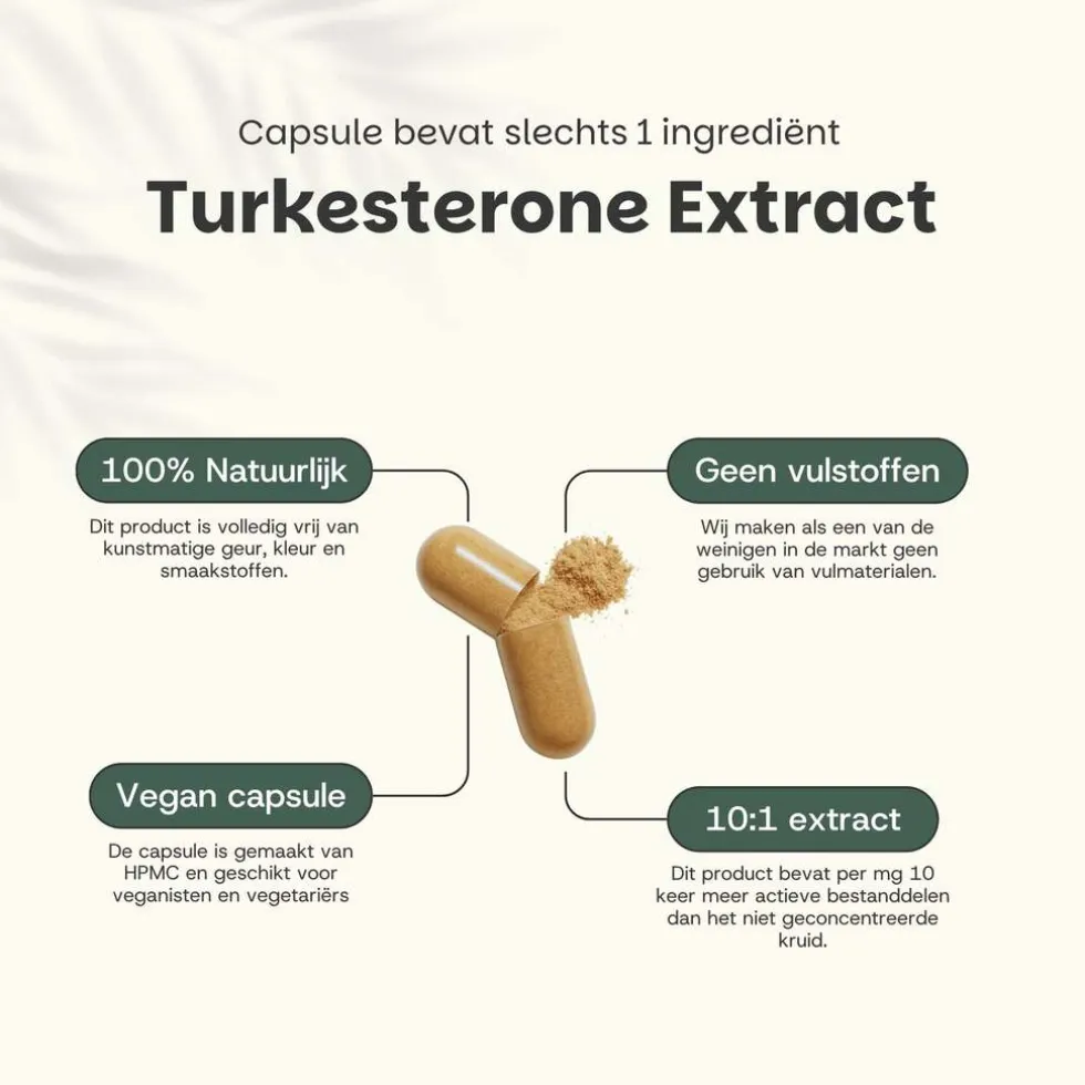 Turkesterone Capsules zijn een natuurlijk supplement dat wordt gewonnen uit de Ajuga turkestanica✔️plant, bekend om zijn krachtige plantaardige steroïde eigenschappen. Dit traditionele ingrediënt ondersteunt spieropbouw, uithoudingsvermogen en algehele vitaliteit 💪 Hoogwaardig gehalte aan Turkesterone – krachtig en puur 🌿 Gewonnen uit Ajuga turkestanica, zonder synthetische toevoegingen 💊 Handige capsules – makkelijk in te nemen en mild voor de maag 🌱 Geschikt voor vegetariërs en veganisten – 100% plantaardig supplement