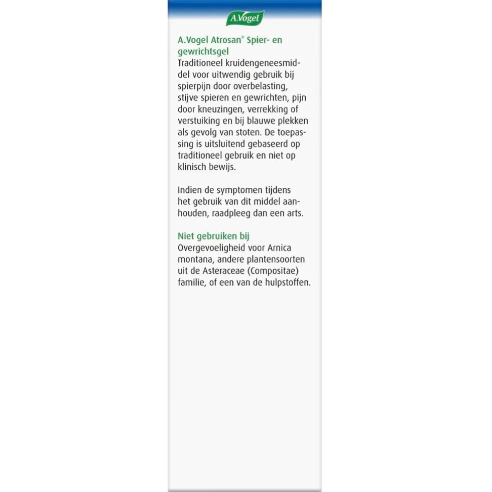 A.Vogel Atrosan Spier- en Gewrichtsgel helpt snel bij spierpijn, stijve spieren en gewrichten en pijn door kneuzingen. Het bevat een sterke concentratie Arnica.