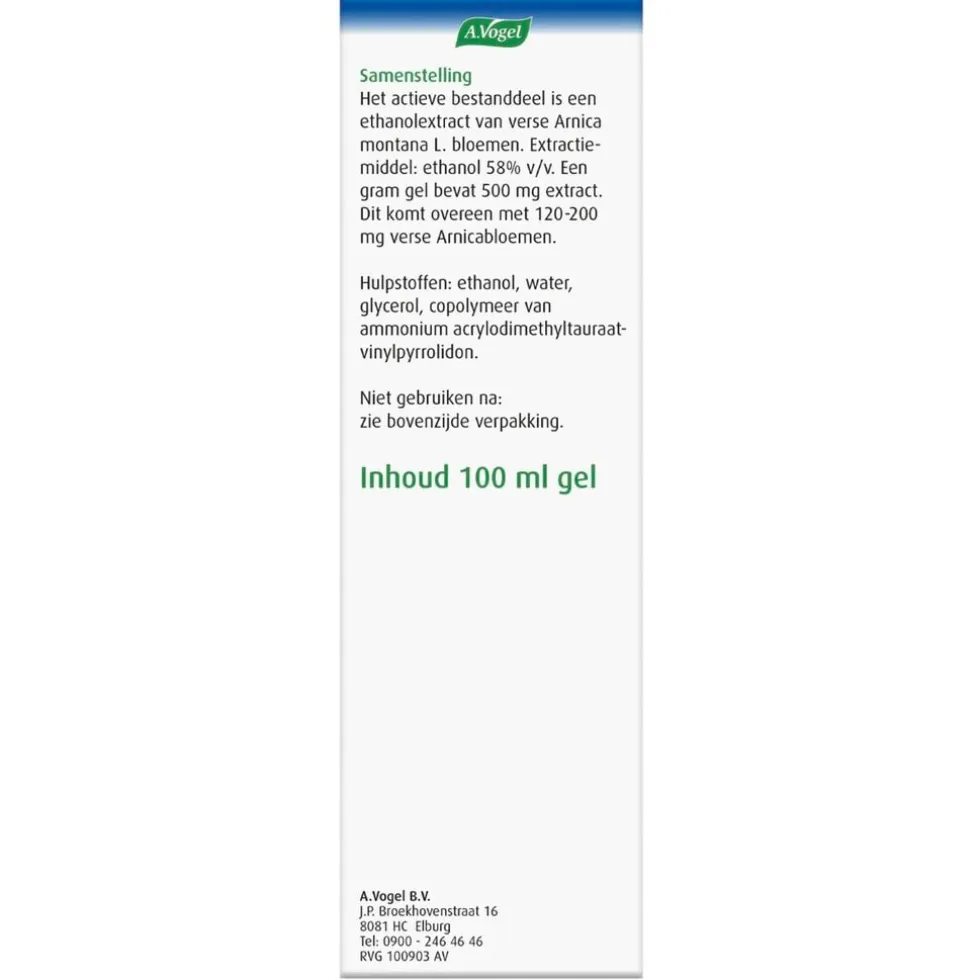 Samenstelling: Het actieve bestanddeel is een ethanolextract van verse Arnica montana L. bloemen. Extractiemiddel: ethanol 58% v/v. Een gram gel bevat 500 mg extract. Dit komt overeen met 120-200 mg verse Arnicabloemen. Hulpstoffen: ethanol, water, glycerol, copolymeer van ammonium acrylodimethyltauraatvinylpyrrolidon.