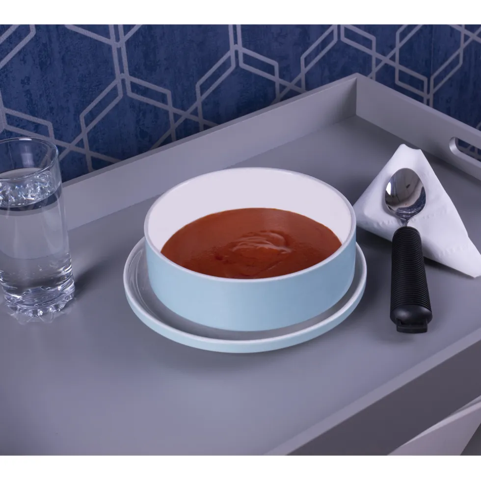 Door het buigen van het bestek is het eten makkelijker voor mensen met een beperkte hand- of armbeweging.