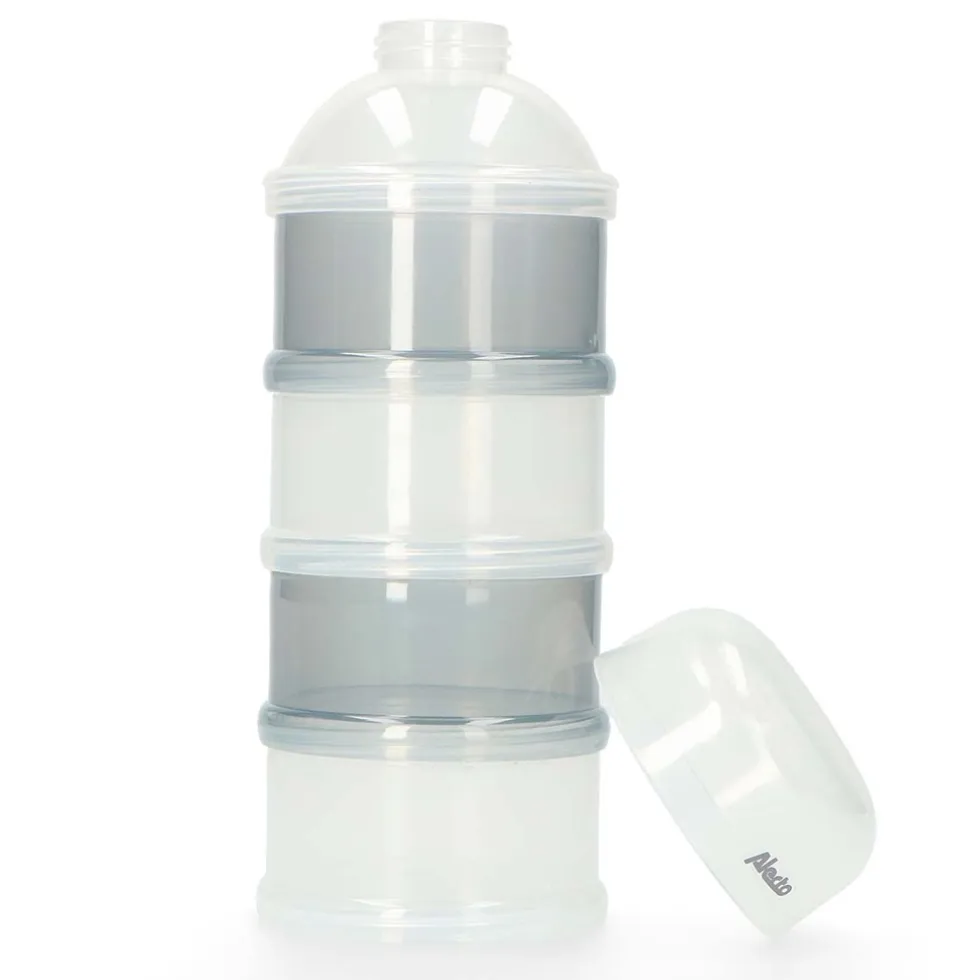 Handig in ontwerpMet de tuit kun je makkelijk het melkpoeder doseren in de bakjes schudden. De randen van de bakjes zijn afgerond zodat er geen poeder in de hoekjes achterblijft. De BF-4 is vaatwasser, diepvries en magnetron bestendig. De melkpoedertoren is BPA vrij en veilig om te gebruiken.Wat zit er in de doos?