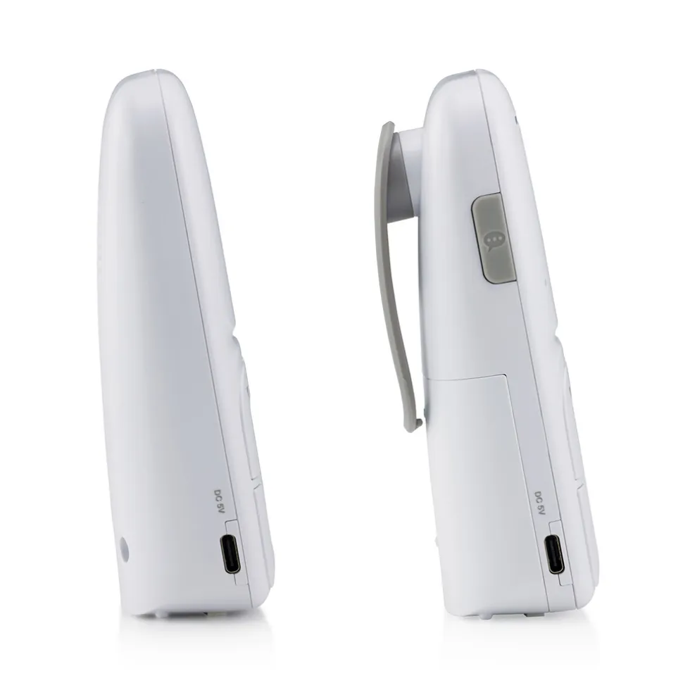 - Oplaadbare ouderunit (oplaadbare batterijen inbegrepen) met riemclip