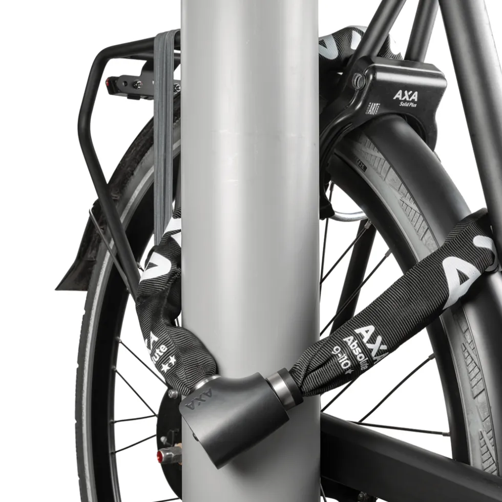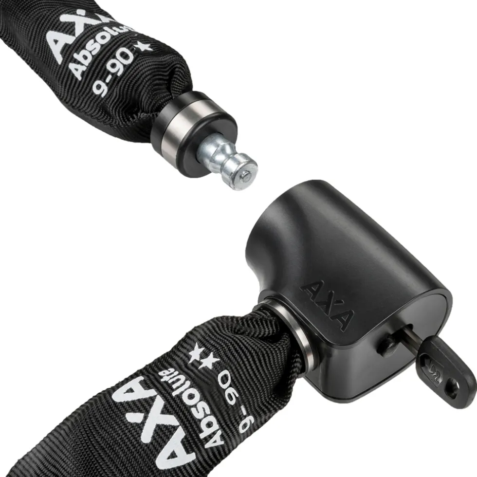 De AXA Absolute 9-90 is een kwalitatief hoogwaardige ketting, speciaal ontwikkeld voor gebruik bij duurdere fietsen en voor langdurig parkeren. De ketting heeft een ART 2 sterren goedkeur, hiermee voldoet het slot aan de eisen om een fietsverzekering af te sluiten. Dit kettingslot heeft een uitstekende kwaliteit als het gaat om knipkracht van de schakels, tevens is de cilinder beveiligd tegen boren. Deze ketting is voorzien van chique RVS details, wat hem een aanwinst maakt voor elke fiets. De Absolute is 90 cm lang, de schakels zijn gemaakt van gehard staal en de diameter bedraagt 9 mm.